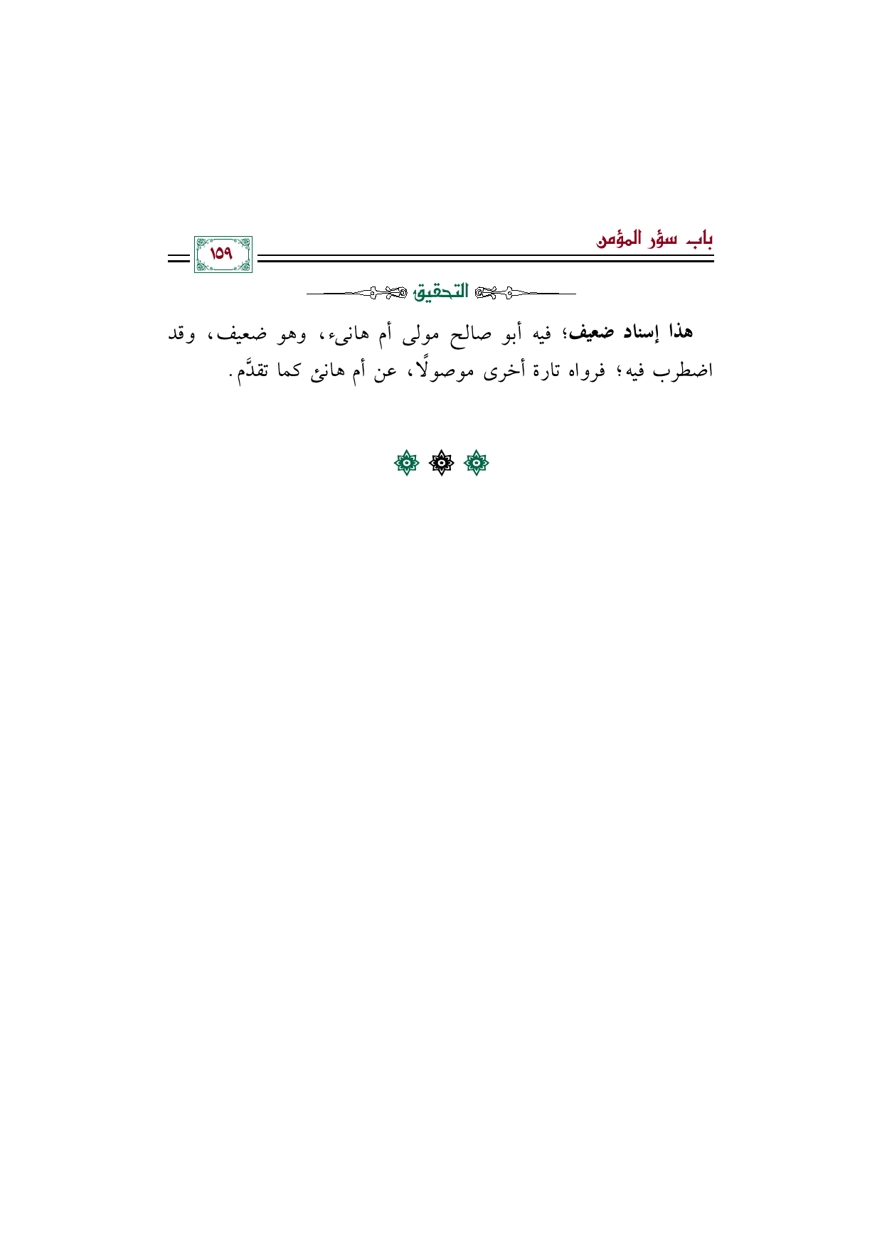 هذا إسناد ضعيف؛ فيه أبو صالح مولى أم هانئ، وهو ضعيف، وقد اضطرب فيه؛ فرواه تارة أخرى موصولًا، عن أم هانئ كما تقدَّم.
