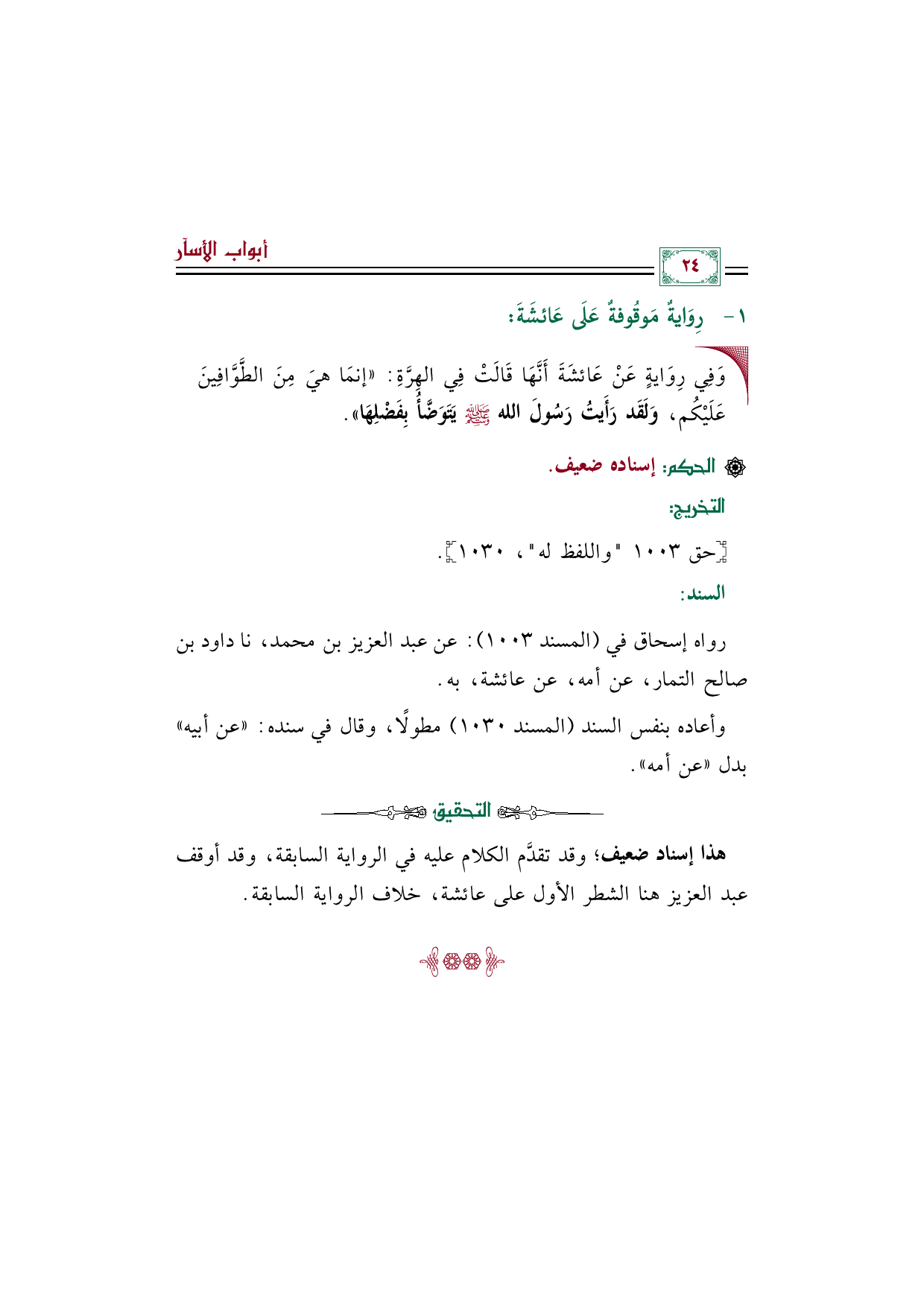 رِوَايةٌ مَوقُوفةٌ عَلَى عَائشَةَ: