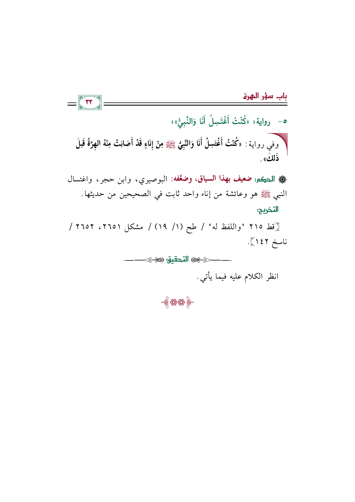 رواية: ((كُنْتُ أَغْتَسِلُ أَنَا وَالنَّبِيُّ)):