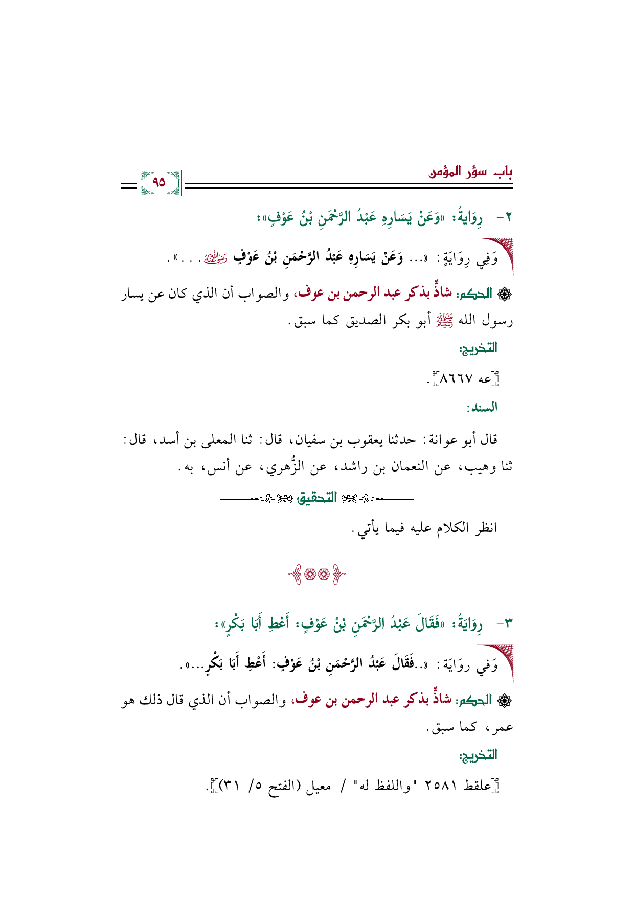 رِوَايةُ: ((وَعَنْ يَسَارِهِ عَبْدُ الرَّحْمَنِ بْنُ عَوْفٍ)):