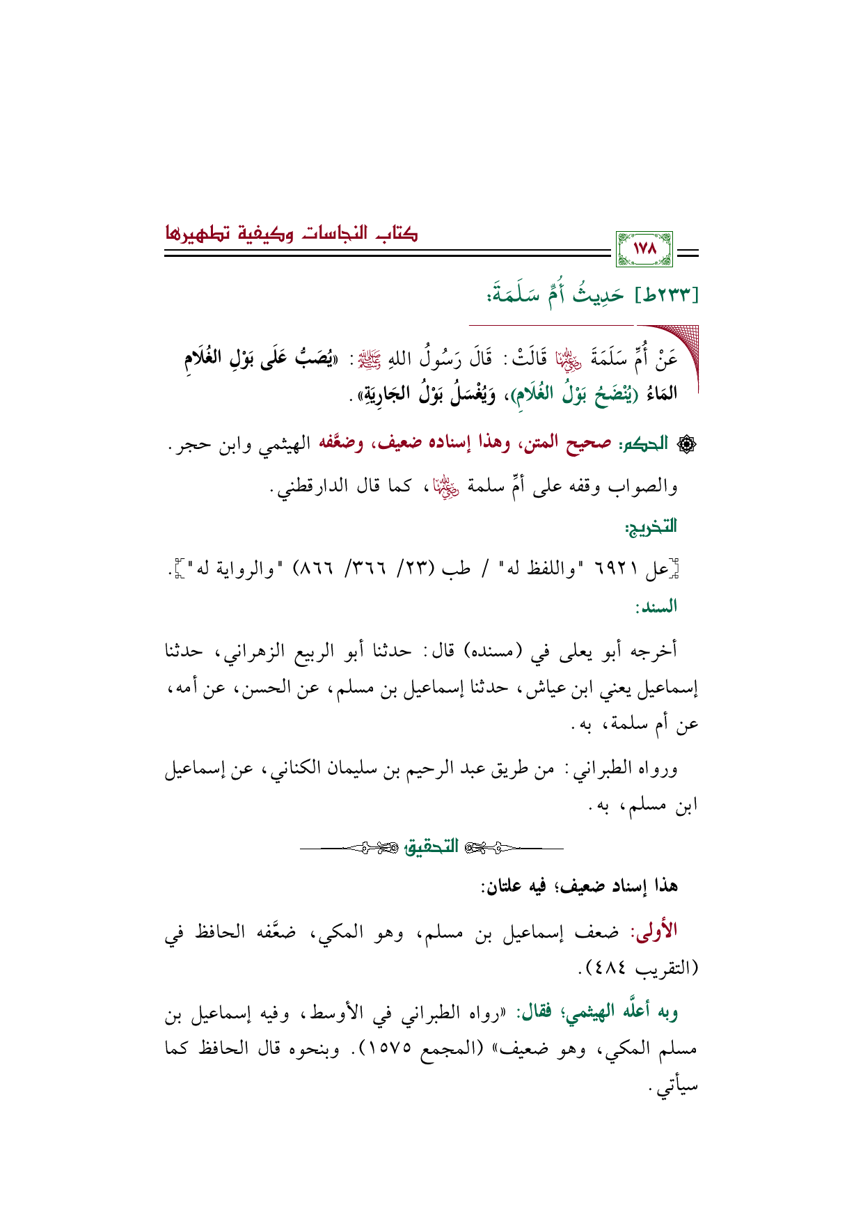 أخرجه أبو يعلى في (مسنده) قال: حدثنا أبو الربيع الزهراني، حدثنا إسماعيل يعني ابن عياش، حدثنا إسماعيل بن مسلم، عن الحسن، عن أمه، عن أم سلمة، به.
