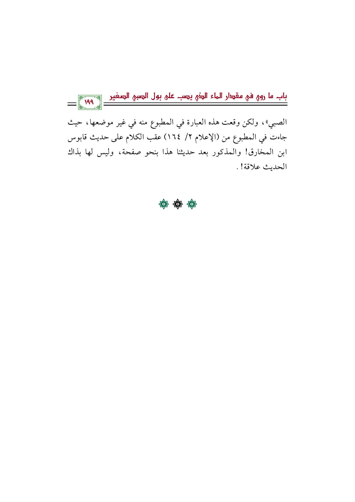 الصبي))، ولكن وقعت هذه العبارة في المطبوع منه في غير موضعها، حيث جاءت في المطبوع من (الإعلام ٢/ ١٦٤) عقب الكلام على حديث قابوس بن المخارق! والمذكور بعد حديثنا هذا بنحو صفحة، وليس لها بذاك الحديث علاقة! .