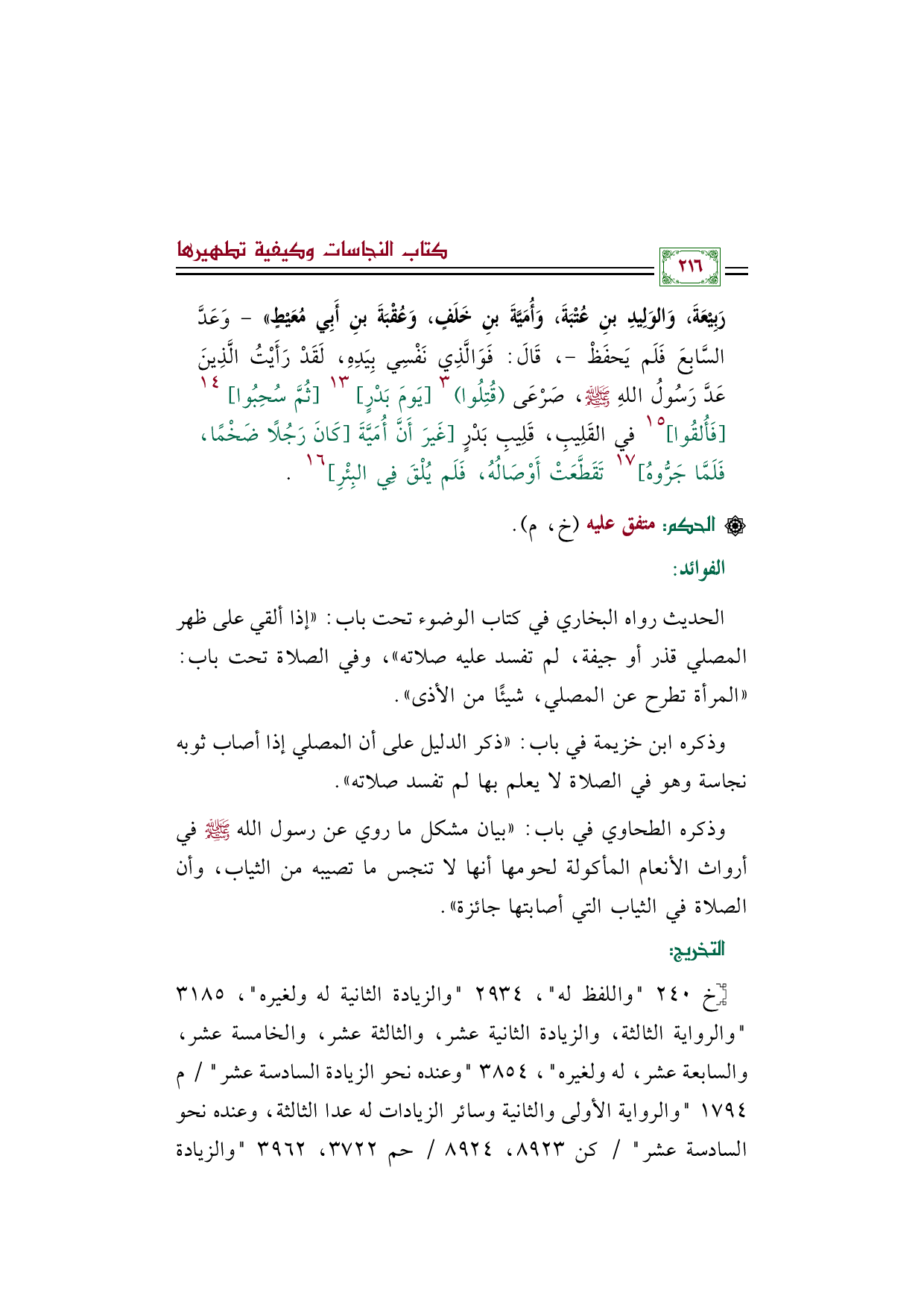 [خ ٢٤٠ واللفظ له، ٢٩٣٤ والزيادة الثانية له ولغيره، ٣١٨٥ والرواية الثالثة، والزيادة الثانية عشر، والثالثة عشر، والخامسة عشر، والسابعة عشر، له ولغيره، ٣٨٥٤ وعنده نحو الزيادة السادسة عشر/ م ١٧٩٤ والرواية الأولى والثانية وسائر الزيادات له عدا الثالثة، وعنده نحو السادسة عشر/ كن ٨٩٢٣، ٨٩٢٤/ حم ٣٧٢٢، ٣٩٦٢ والزيادة