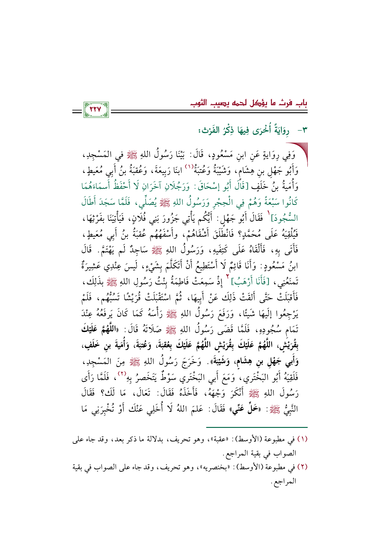 رواية أُخْرَى فِيهَا ذِكْرُ الفَرْث: