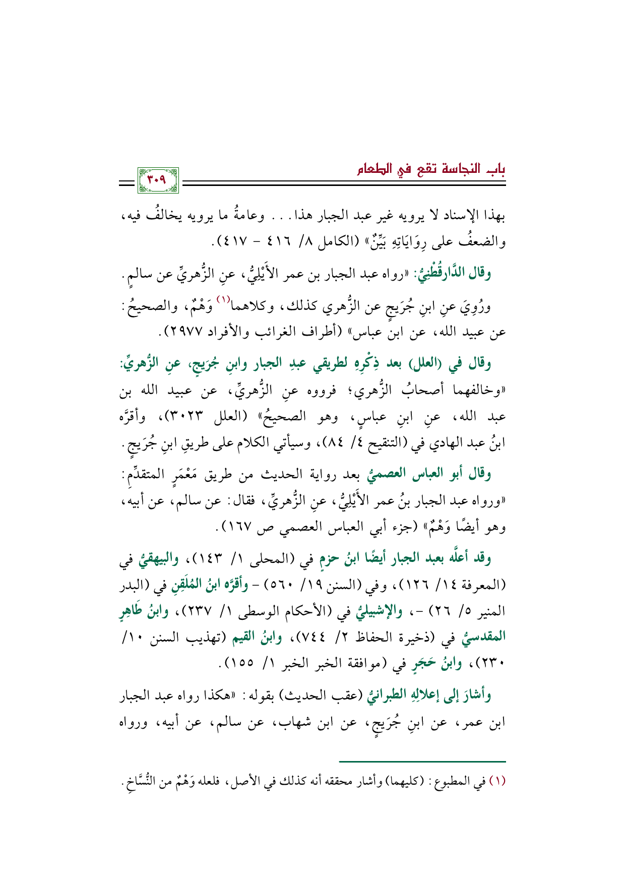 وقد أعلَّه بعبد الجبار أيضًا ابنُ حزمٍ في (المحلى ١/ ١٤٣)، والبيهقيُّ في (المعرفة ١٤/ ١٢٦)، وفي (السنن ١٩/ ٥٦٠) -وأقرَّه ابنُ المُلَقِنِ في (البدر المنير ٥/ ٢٦) -، والإشبيليُّ في (الأحكام الوسطى ١/ ٢٣٧)، وابنُ طَاهِرٍ المقدسيُّ في (ذخيرة الحفاظ ٢/ ٧٤٤)، وابنُ القيم (تهذيب السنن ١٠/ ٢٣٠)، وابنُ حَجَرٍ في (موافقة الخبر الخبر ١/ ١٥٥).