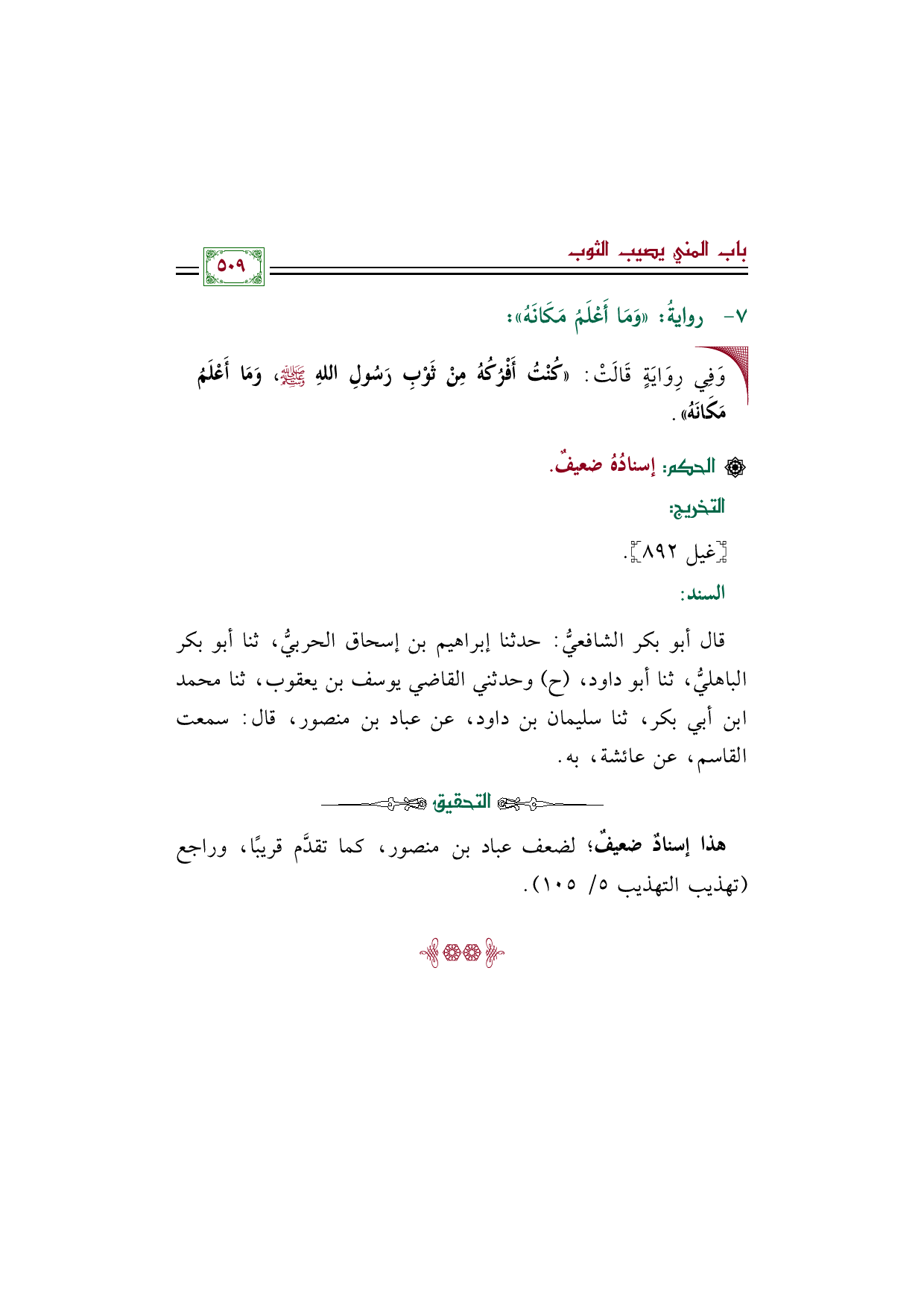 قال أبو بكر الشافعيُّ: حدثنا إبراهيم بن إسحاق الحربيُّ، ثنا أبو بكر الباهليُّ، ثنا أبو داود، (ح) وحدثني القاضي يوسف بن يعقوب، ثنا محمد بن أبي بكر، ثنا سليمان بن داود، عن عباد بن منصور، قال: سمعت القاسم، عن عائشة، به.