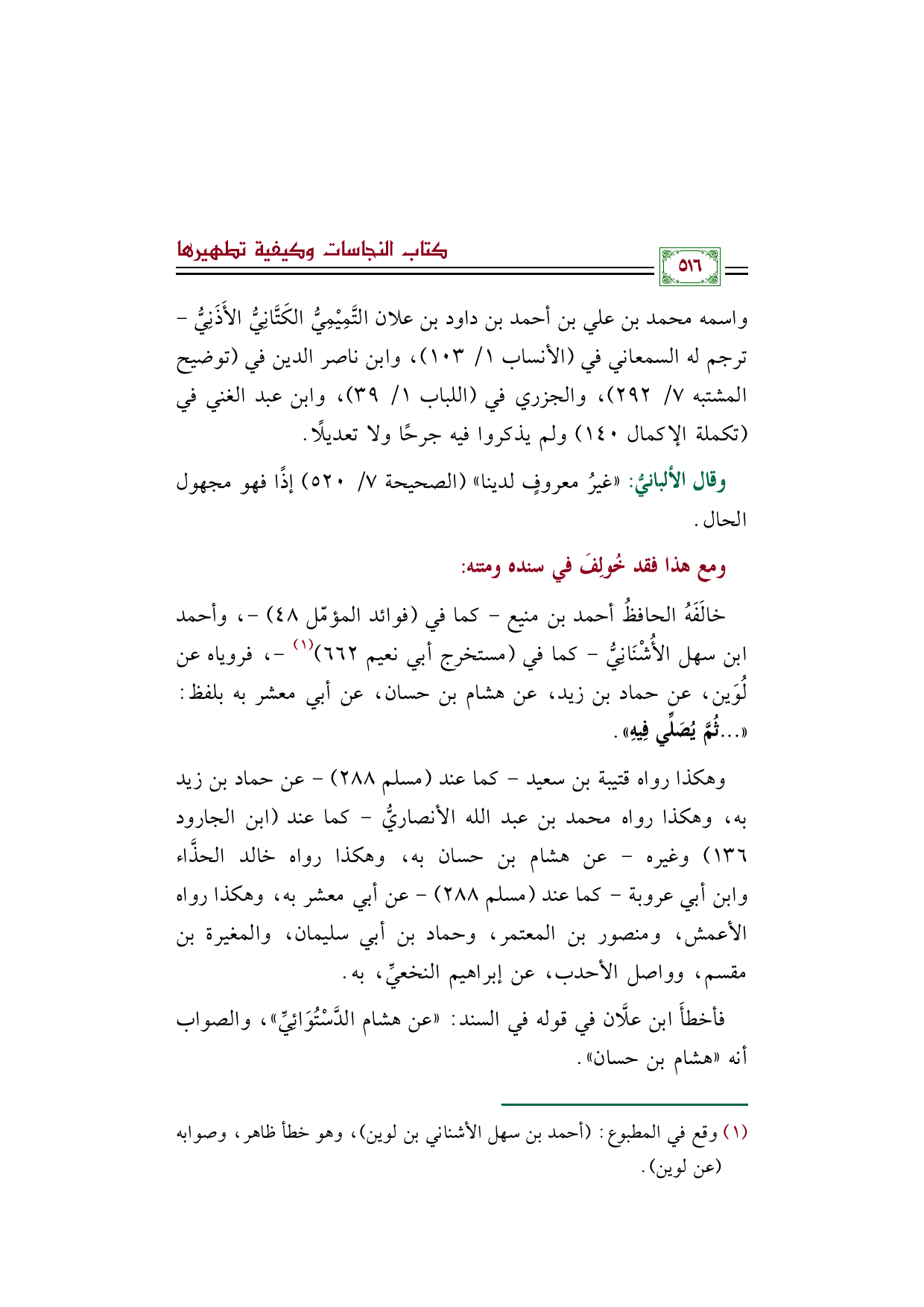 خالَفَهُ الحافظُ أحمد بن منيع -كما في (فوائد المؤمّل ٤٨) -، وأحمد بن سهل الأُشْنَانِيُّ -كما في (مستخرج أبي نعيم ٦٦٢) (¬١) -، فروياه عن لُوَين، عن حماد بن زيد، عن هشام بن حسان، عن أبي معشر به بلفظ: (( ... ثُمَّ يُصَلِّي فِيهِ)).