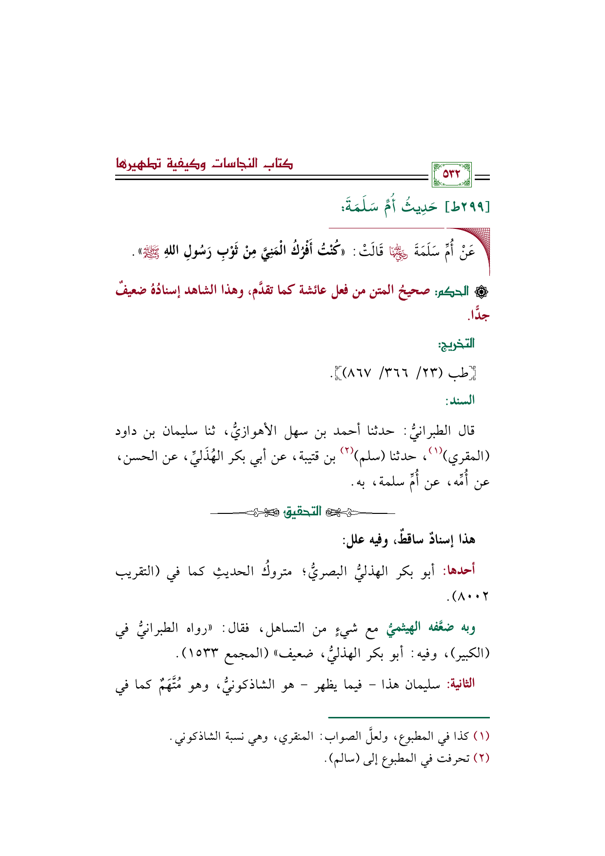 ٢٩٩ - حَدِيثُ أُمِّ سَلَمَةَ: