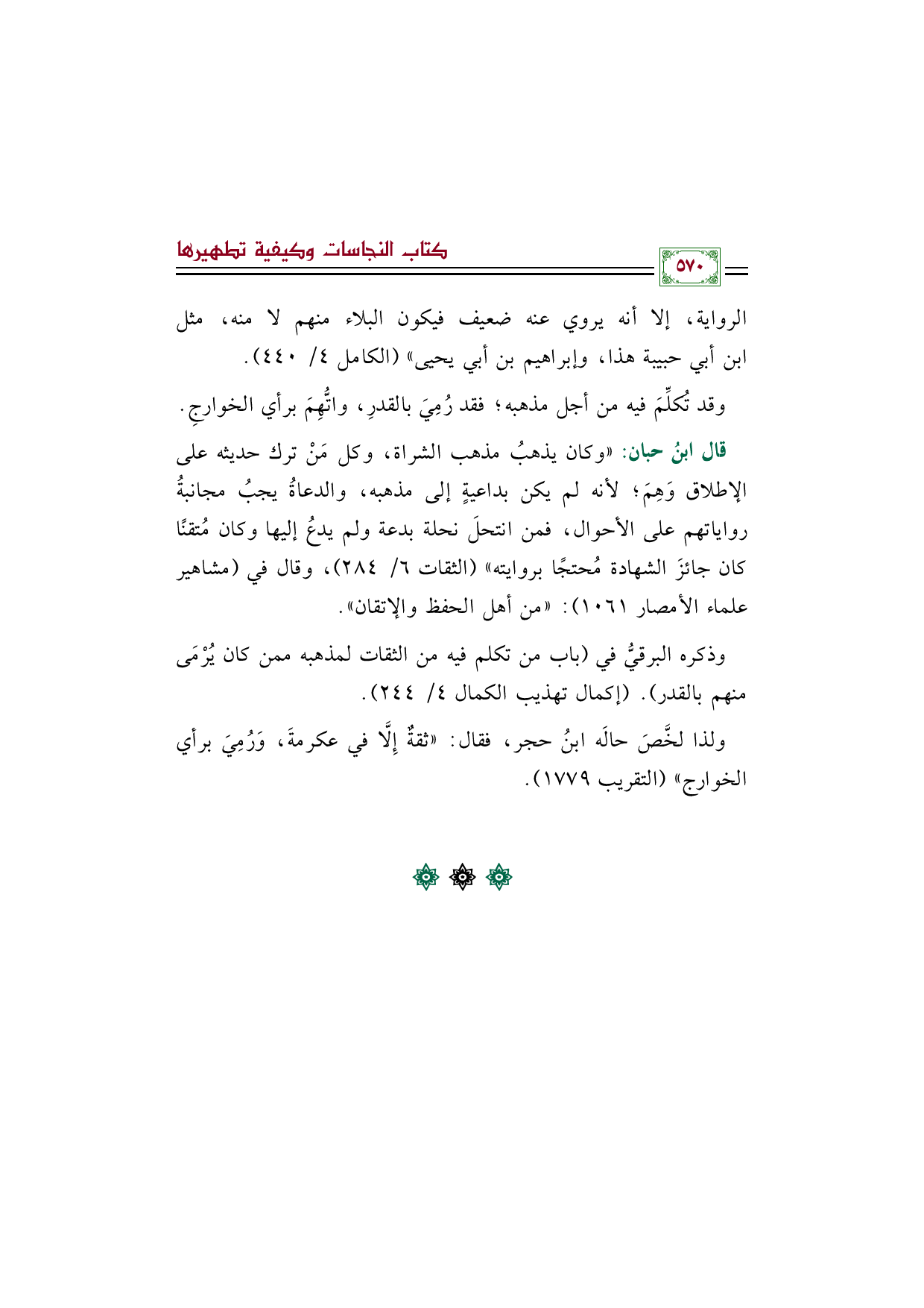 ولذا لخَّصَ حالَه ابنُ حجر، فقال: ((ثقةٌ إِلَّا في عكرمةَ، وَرُمِيَ برأي الخوارج)) (التقريب ١٧٧٩).
