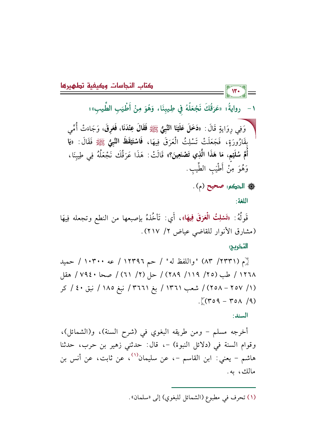 (¬١) تحرف في مطبوع (الشمائل للبغوي) إلى ((سلمان)).