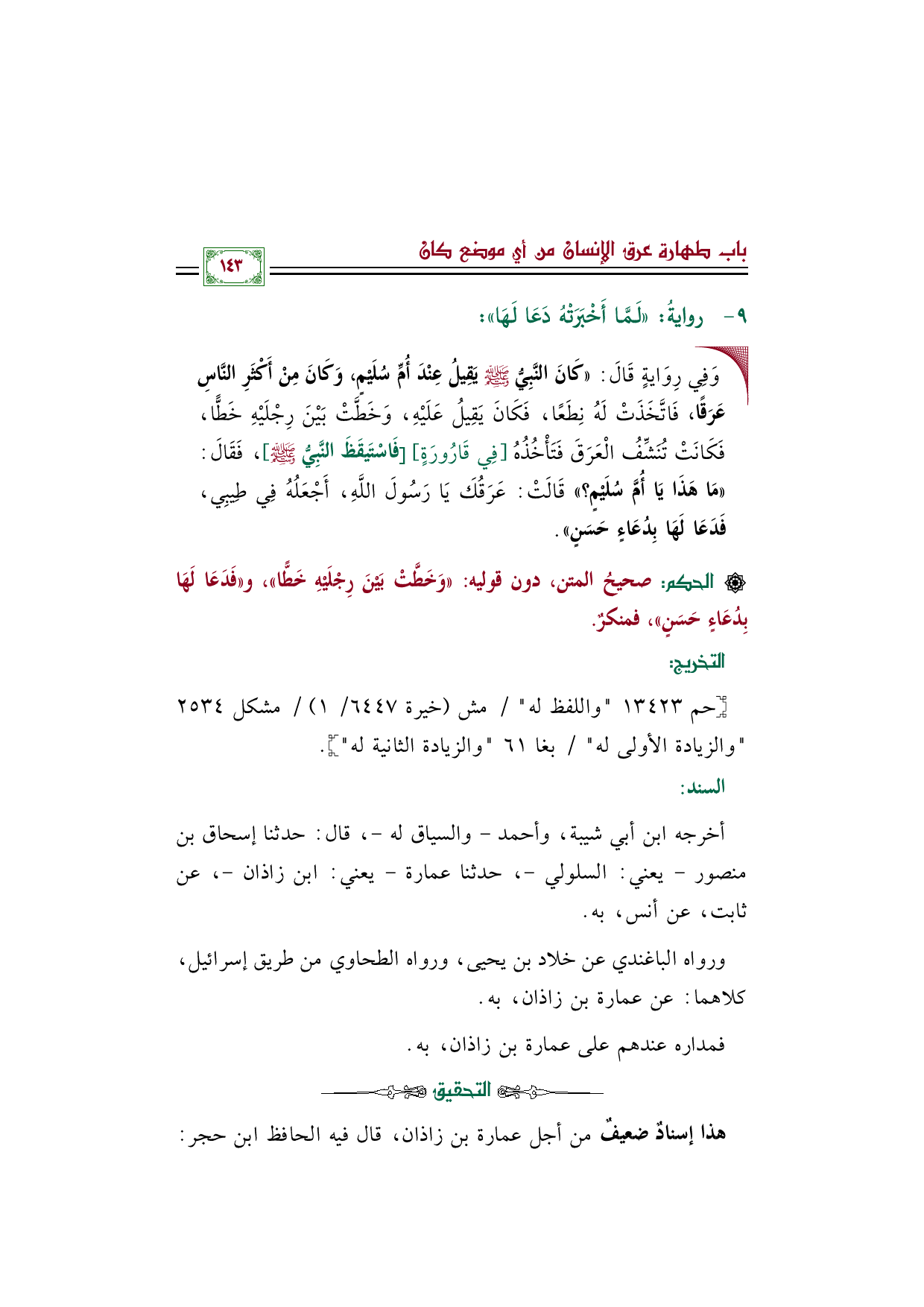 ورواه الباغندي عن خلاد بن يحيى، ورواه الطحاوي من طريق إسرائيل، كلاهما: عن عمارة بن زاذان، به.