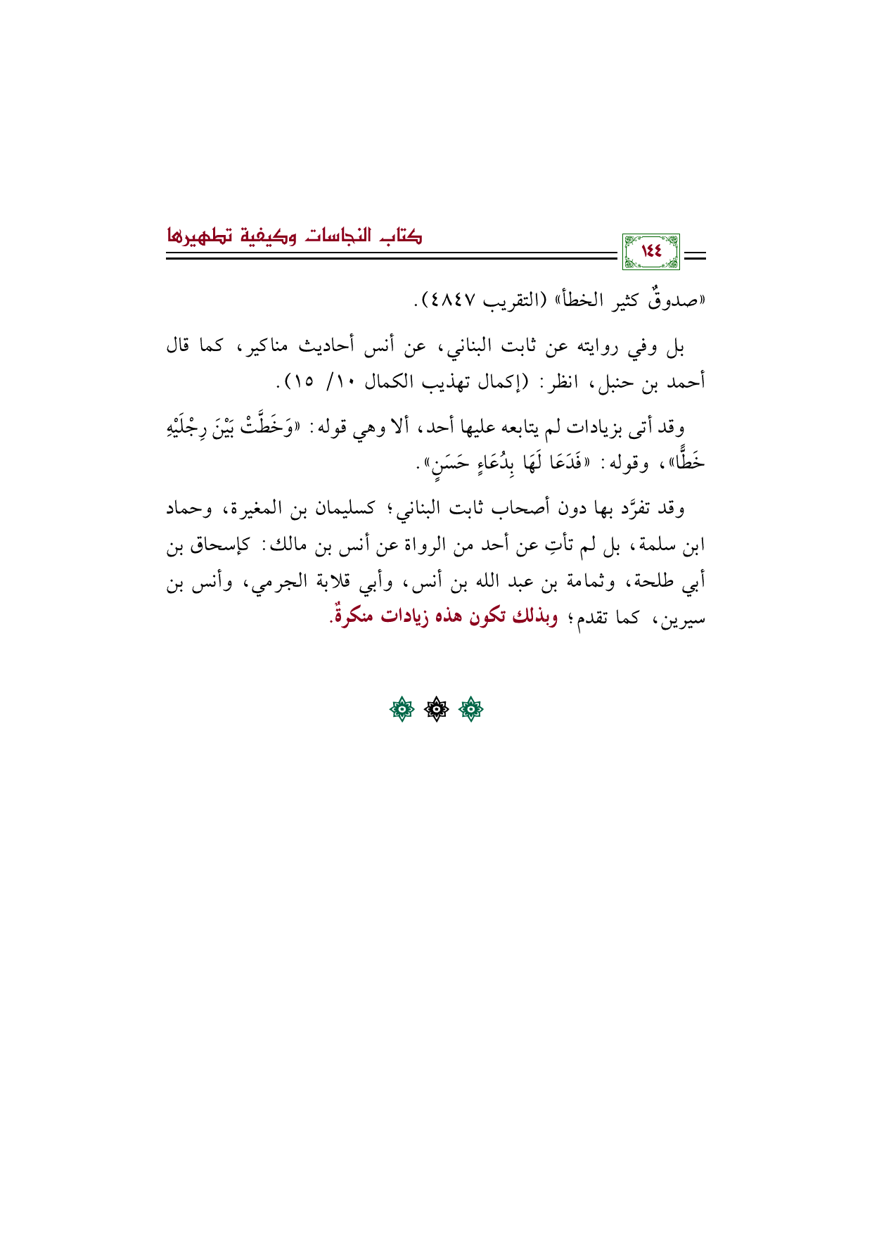 بل وفي روايته عن ثابت البناني، عن أنس أحاديث مناكير، كما قال أحمد بن حنبل، انظر: (إكمال تهذيب الكمال ١٠/ ١٥).