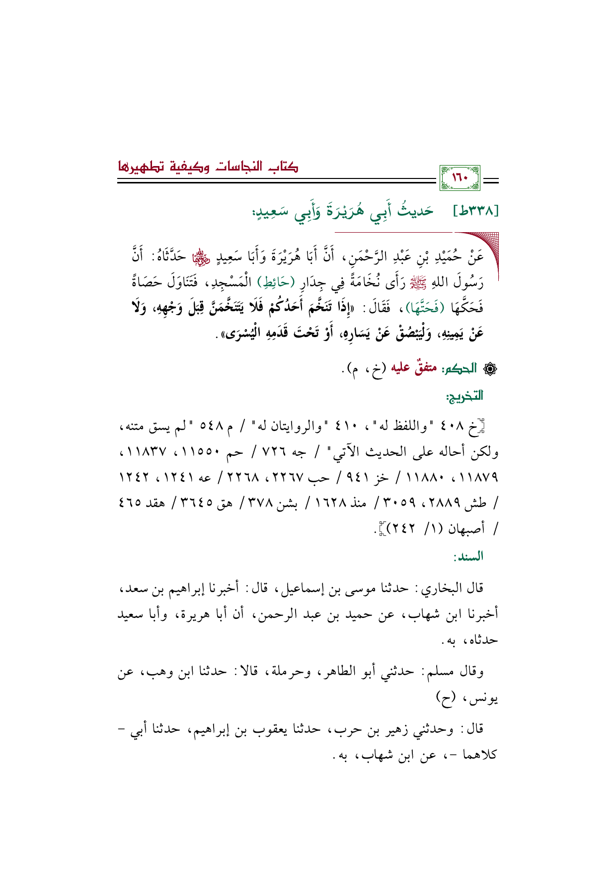 [خ ٤٠٨ ((واللفظ له))، ٤١٠ ((والروايتان له)) / م ٥٤٨ ((لم يسق متنه، ولكن أحاله على الحديث الآتي)) / جه ٧٢٦/ حم ١١٥٥٠، ١١٨٣٧، ١١٨٧٩، ١١٨٨٠/ خز ٩٤١/ حب ٢٢٦٧، ٢٢٦٨/ عه ١٢٤١، ١٢٤٢/ طش ٢٨٨٩، ٣٠٥٩/ منذ ١٦٢٨/ بشن ٣٧٨/ هق ٣٦٤٥/ هقد ٤٦٥/ أصبهان (١/ ٢٤٢)].