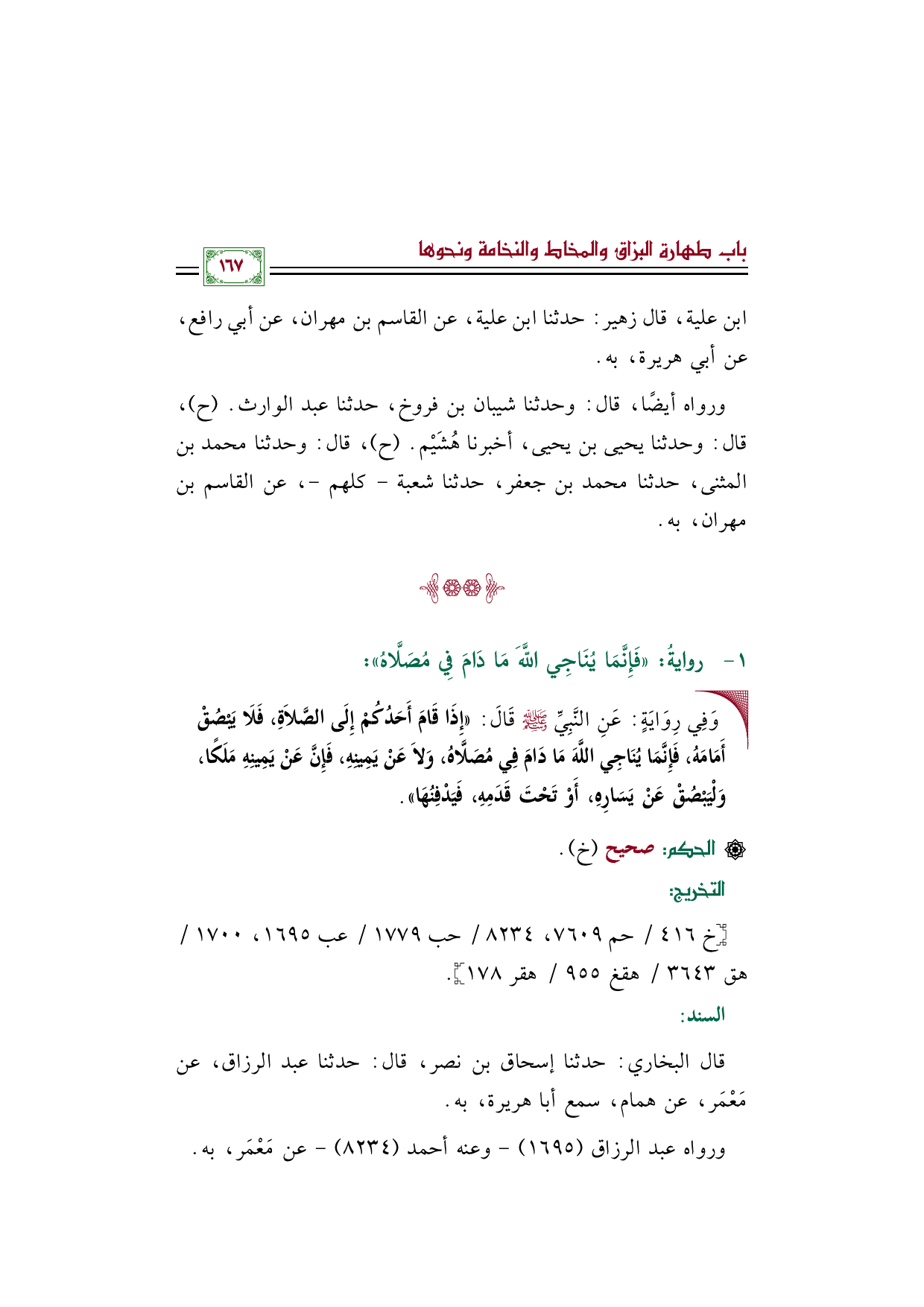 قال البخاري: حدثنا إسحاق بن نصر، قال: حدثنا عبد الرزاق، عن مَعْمَر، عن همام، سمع أبا هريرة، به.