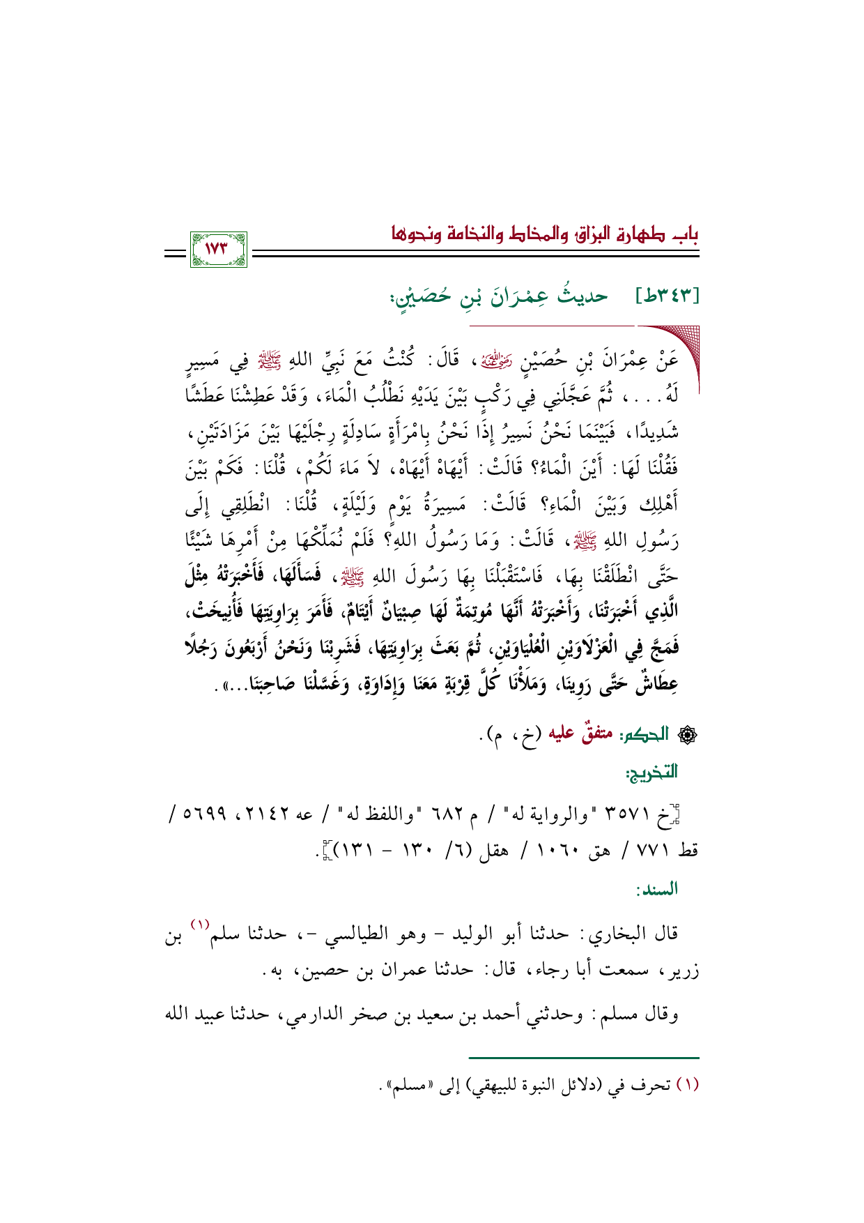٣٤٣ - حديثُ عِمْرَانَ بْنِ حُصَيْنٍ:
