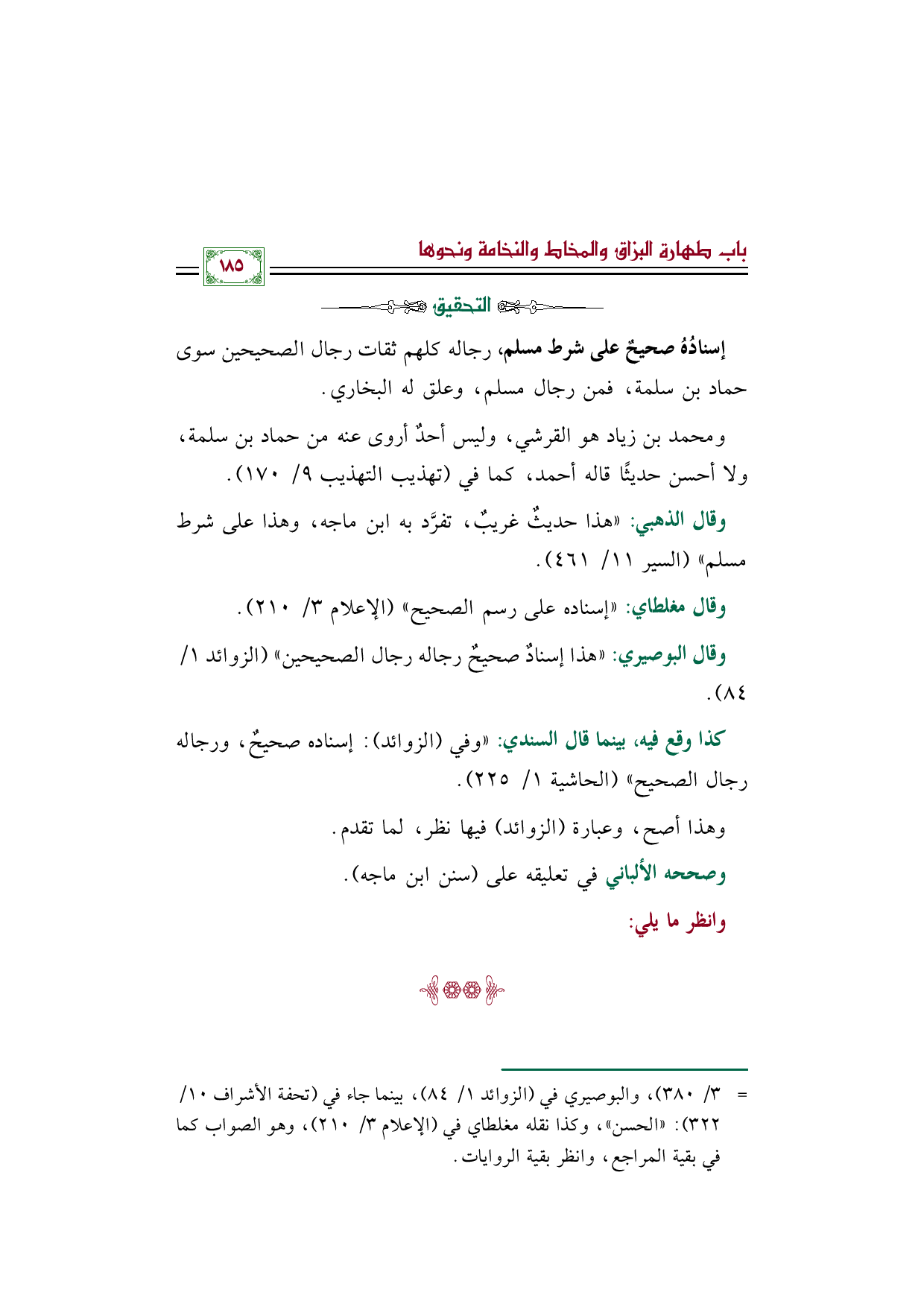 كذا وقع فيه، بينما قال السندي: ((وفي (الزوائد): إسناده صحيحٌ، ورجاله رجال الصحيح)) (الحاشية ١/ ٢٢٥).