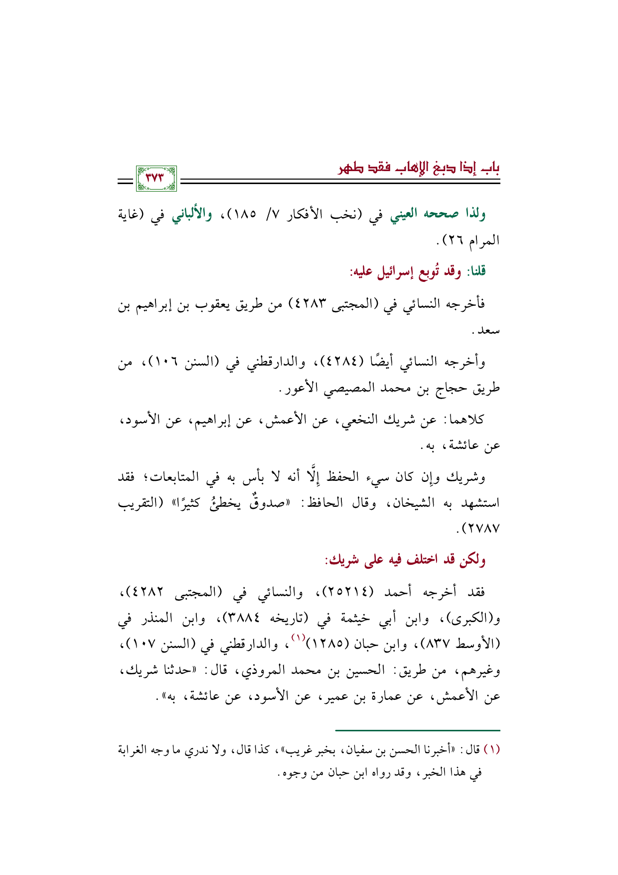 ولذا صححه العيني في (نخب الأفكار ٧/ ١٨٥)، والألباني في (غاية المرام ٢٦).