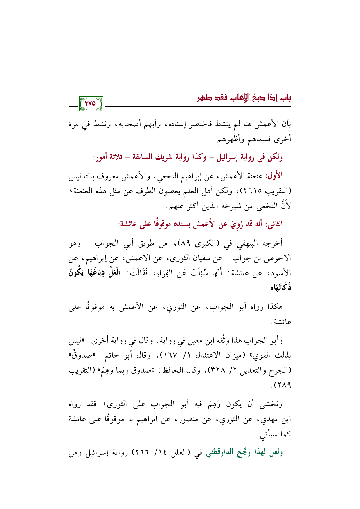 ولعل لهذا رجَّح الدارقطني في (العلل ١٤/ ٢٦٦) رواية إسرائيل ومن