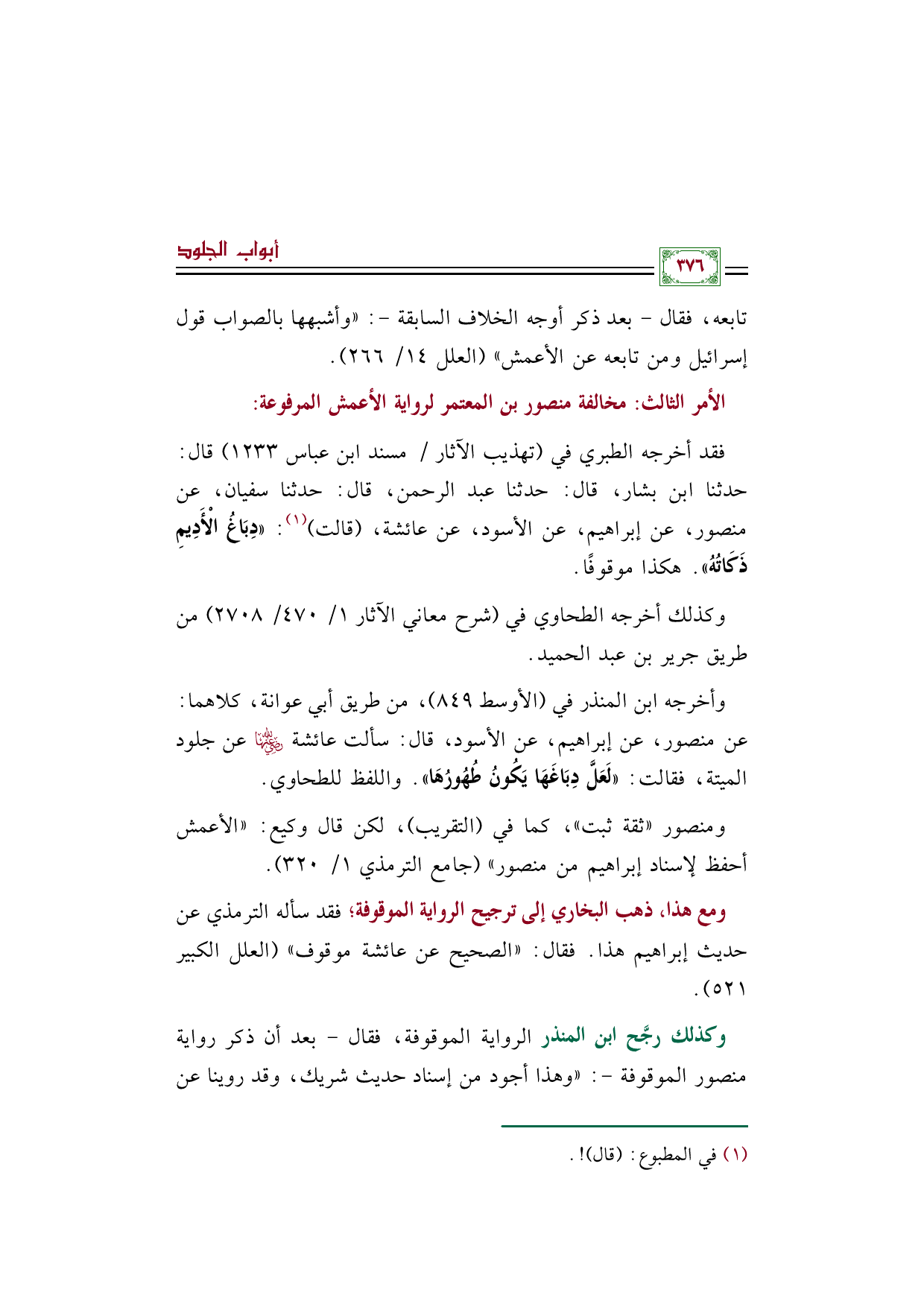 الأمر الثالث: مخالفة منصور بن المعتمر لرواية الأعمش المرفوعة: