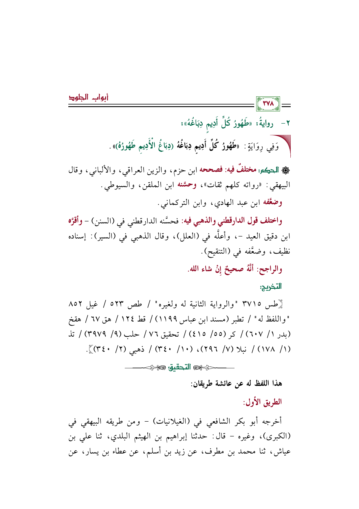 واختلف قول الدارقطني والذهبي فيه: فحسَّنه الدارقطني في (السنن) -وأقرَّه ابن دقيق العيد-، وأعلَّه في (العلل)، وقال الذهبي في (السير): إسناده نظيف، وضعَّفه في (التنقيح).
