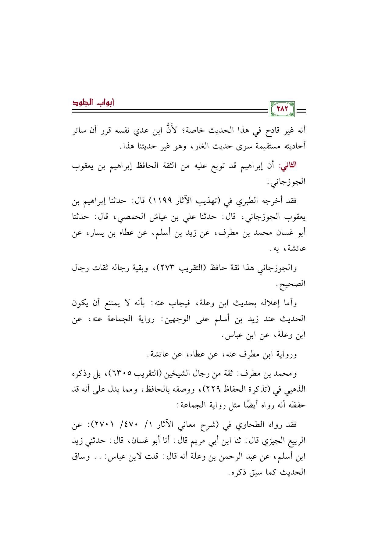 الثاني: أن إبراهيم قد توبع عليه من الثقة الحافظ إبراهيم بن يعقوب الجوزجاني: