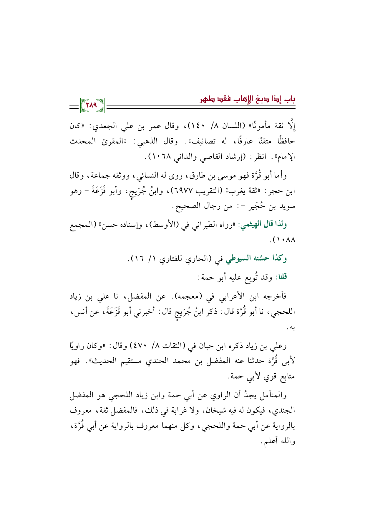 والمتأمل يجدُ أن الراوي عن أبي حمة وابن زياد اللحجي هو المفضل الجندي، فيكون له فيه شيخان، ولا غرابة في ذلك، فالمفضل ثقة، معروف بالرواية عن أبي حمة واللحجي، وكل منهما معروف بالرواية عن أبي قُرَّة، والله أعلم.