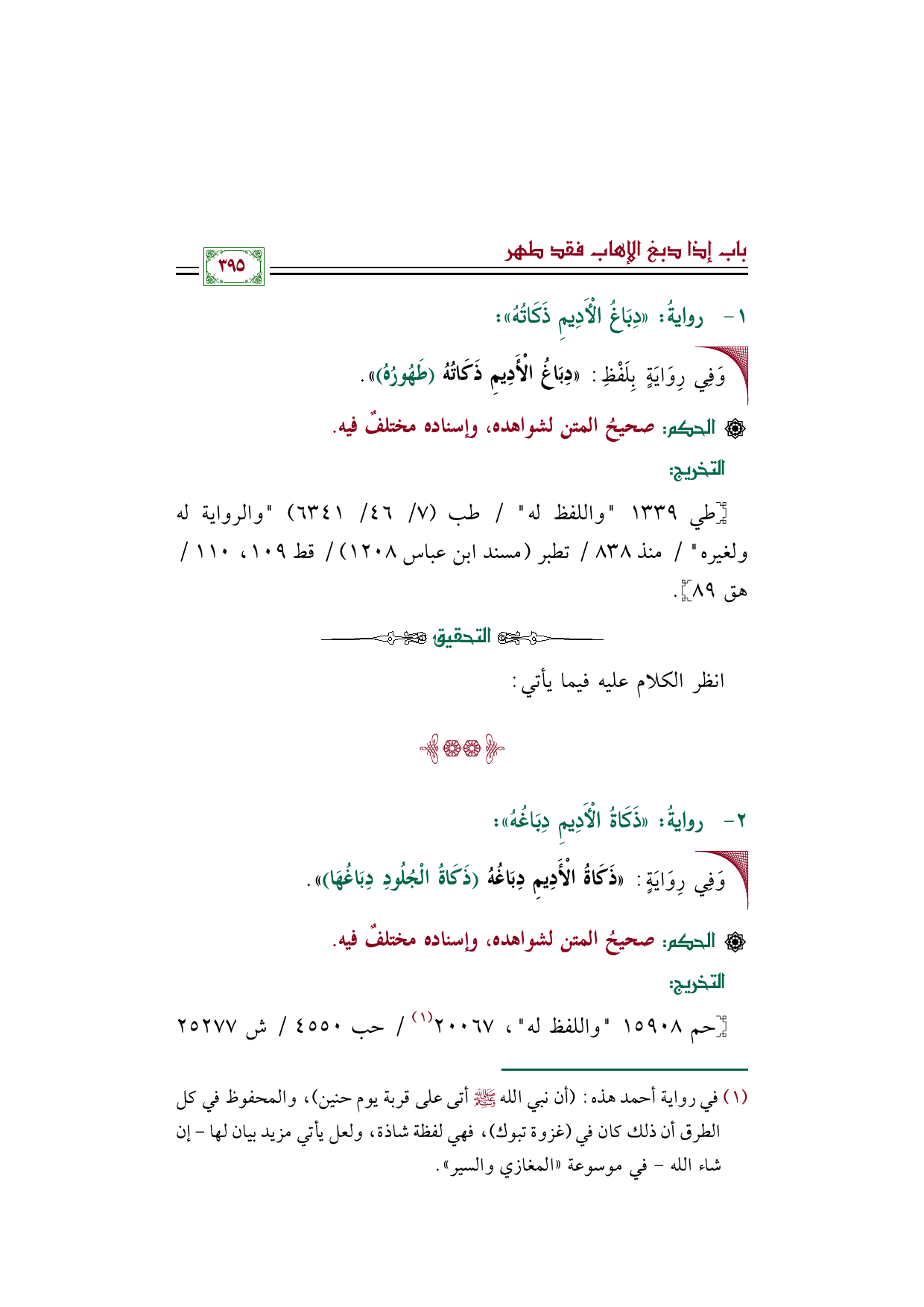 (¬١) في رواية أحمد هذه: (أن نبي الله صلى الله عليه وسلم أتى على قربة يوم حنين)، والمحفوظ في كل الطرق أن ذلك كان في (غزوة تبوك)، فهي لفظة شاذة، ولعل يأتي مزيد بيان لها -إن شاء الله- في موسوعة ((المغازي والسير)).