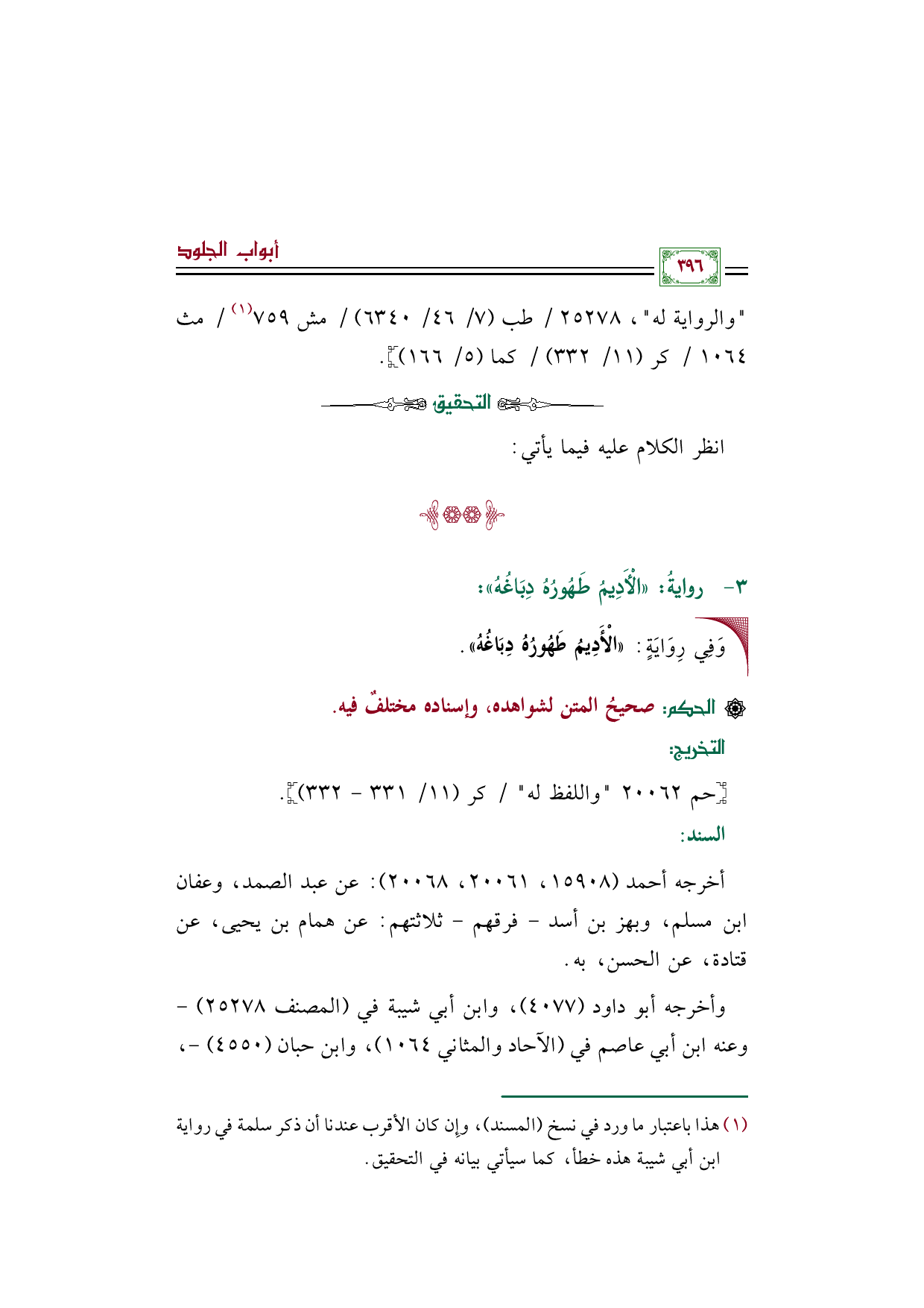 وأخرجه أبو داود (٤٠٧٧)، وابن أبي شيبة في (المصنف ٢٥٢٧٨) -وعنه ابن أبي عاصم في (الآحاد والمثاني ١٠٦٤)، وابن حبان (٤٥٥٠) -،