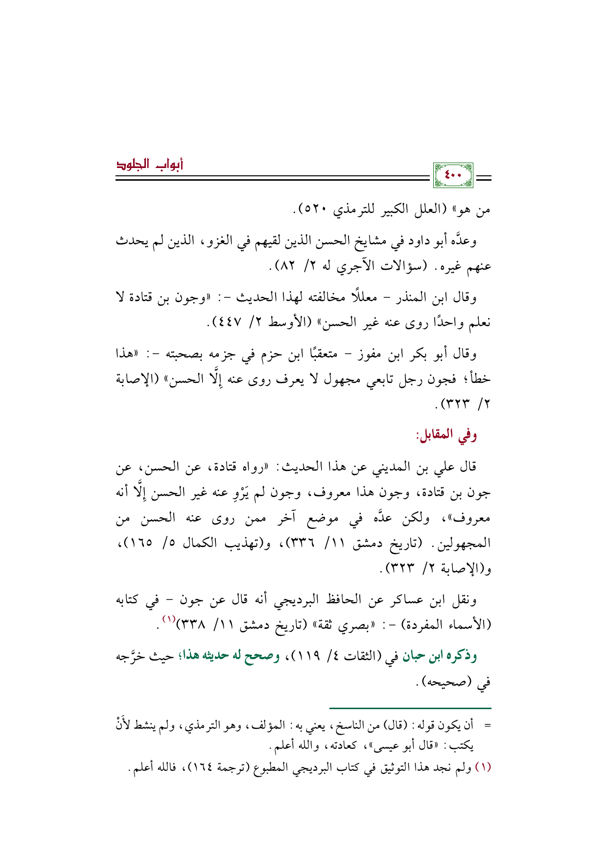 من هو)) (العلل الكبير للترمذي ٥٢٠).