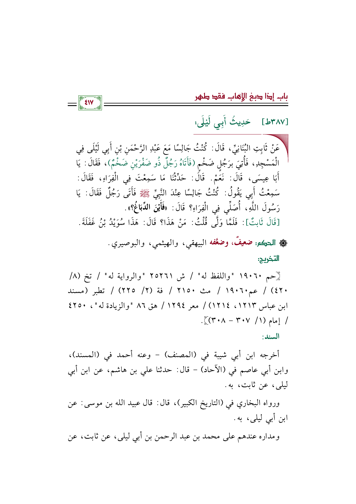 ٣٨٧ - حَدِيثُ أَبِيِ لَيْلَى: