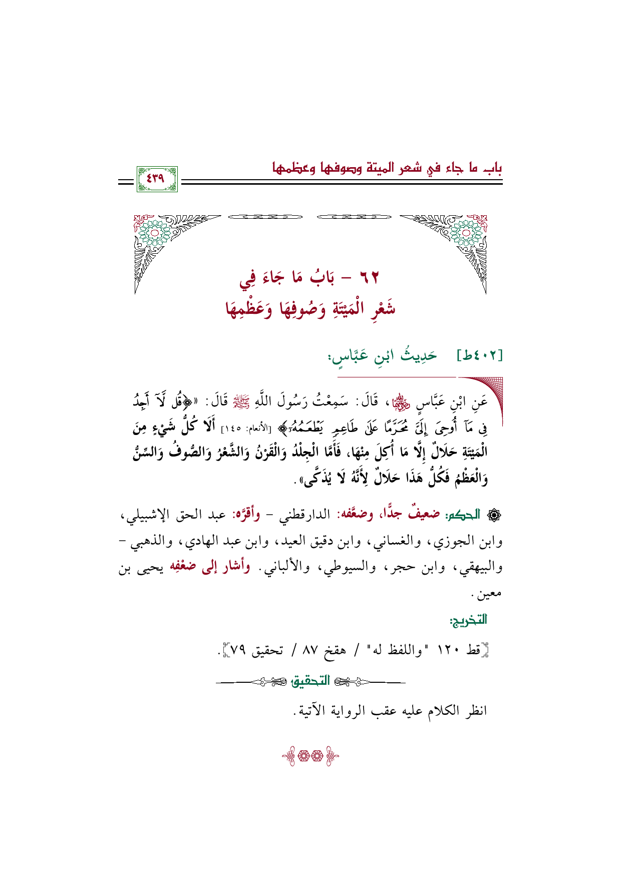 [التخريج]: [قط ١٢٠ ((واللفظ له)) / هقخ ٨٧/ تحقيق ٧٩].