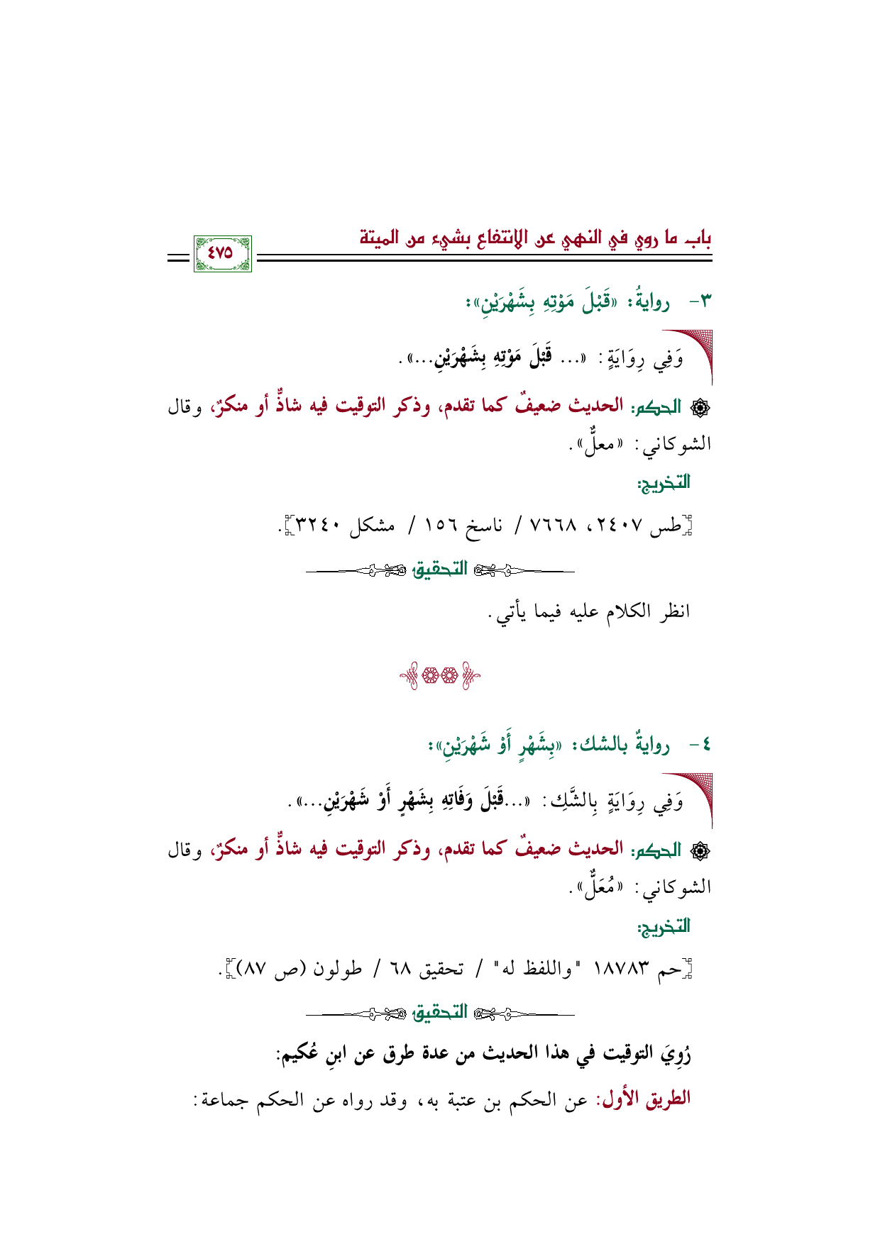 روايةٌ بالشك: ((بِشَهْرٍ أَوْ شَهْرَيْنِ)):