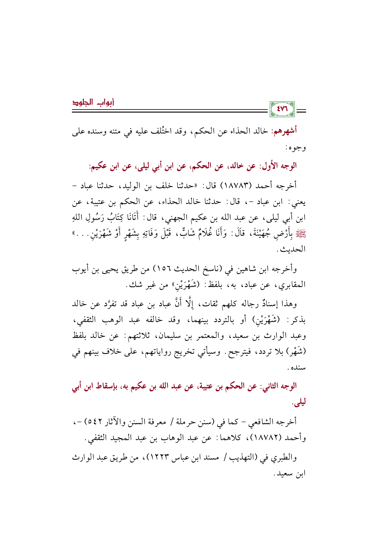 الوجه الأول: عن خالد، عن الحكم، عن ابن أبي ليلى، عن ابن عكيم: