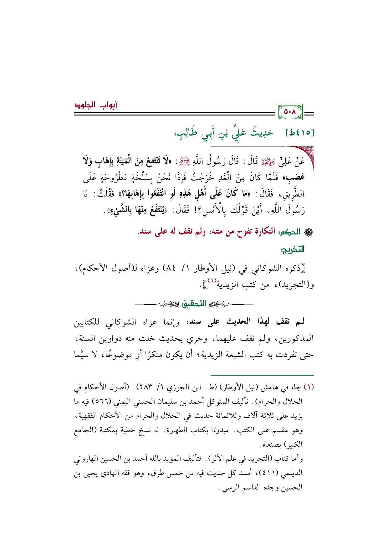 [ذكره الشوكاني في (نيل الأوطار ١/ ٨٤) وعزاه لـ (أصول الأحكام)، و (التجريد)، من كتب الزيدية (¬١)].