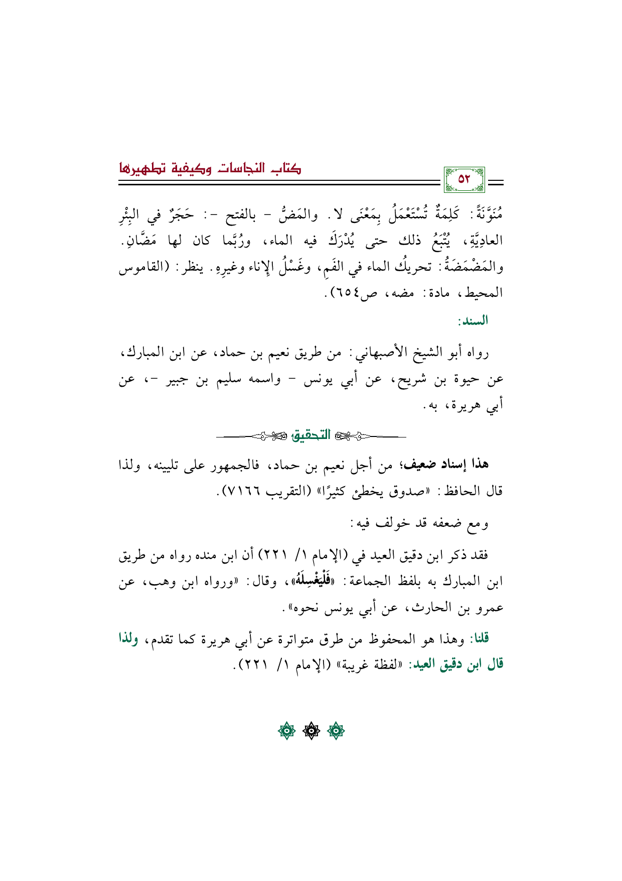 قلنا: وهذا هو المحفوظ من طرق متواترة عن أبي هريرة كما تقدم، ولذا قال ابن دقيق العيد: ((لفظة غريبة)) (الإمام ١/ ٢٢١).