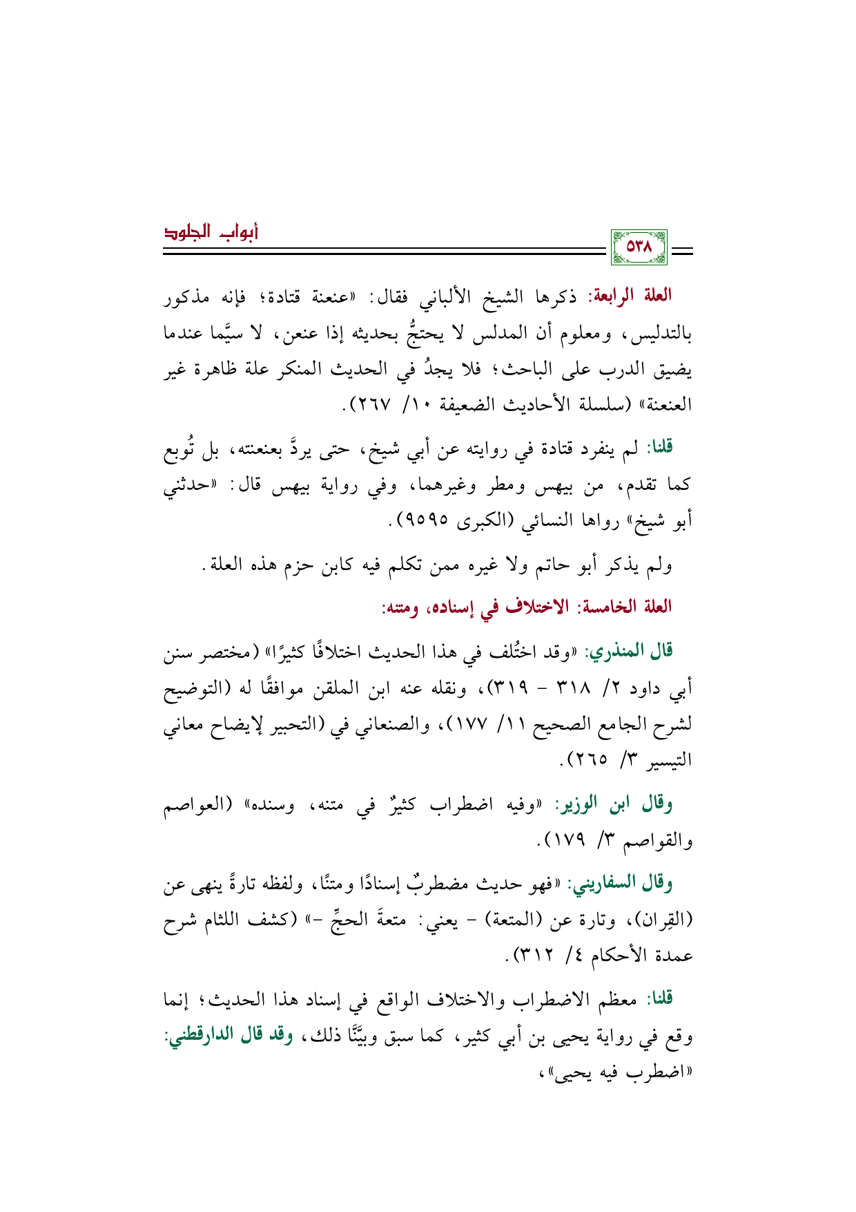 قال المنذري: ((وقد اختُلف في هذا الحديث اختلافًا كثيرًا)) (مختصر سنن أبي داود ٢/ ٣١٨ - ٣١٩)، ونقله عنه ابن الملقن موافقًا له (التوضيح لشرح الجامع الصحيح ١١/ ١٧٧)، والصنعاني في (التحبير لإيضاح معاني التيسير ٣/ ٢٦٥).