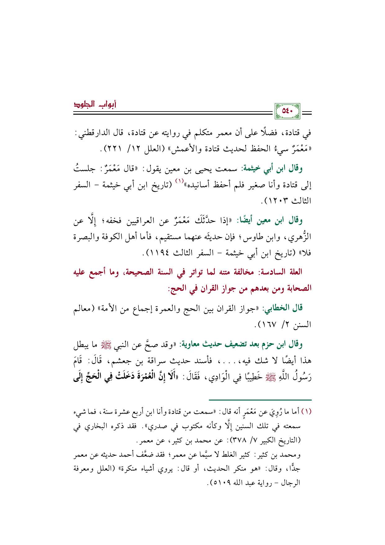 العلة السادسة: مخالفة متنه لما تواتر في السنة الصحيحة، وما أجمع عليه الصحابة ومن بعدهم من جواز القران في الحج: