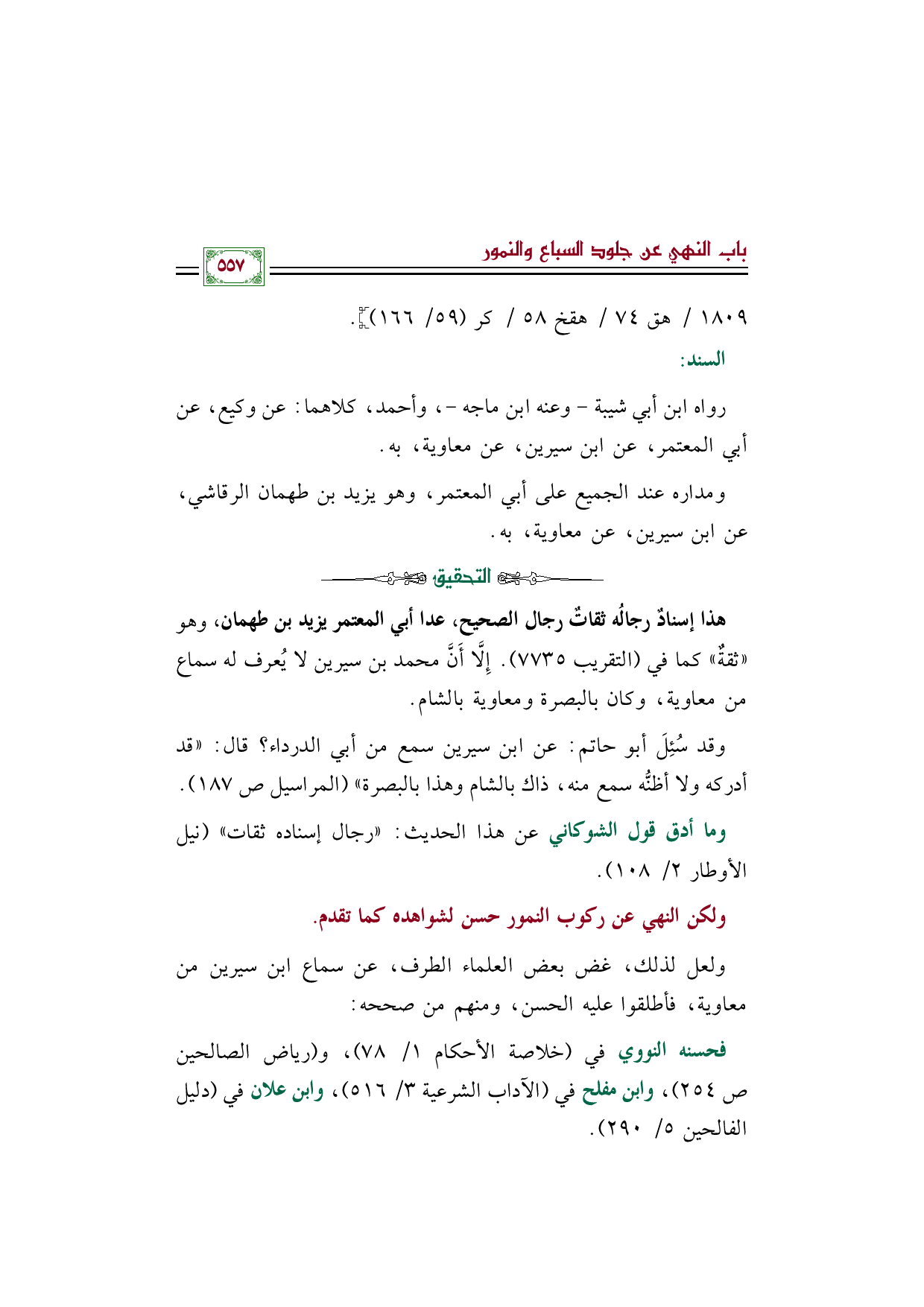 ولكن النهي عن ركوب النمور حسن لشواهده كما تقدم.