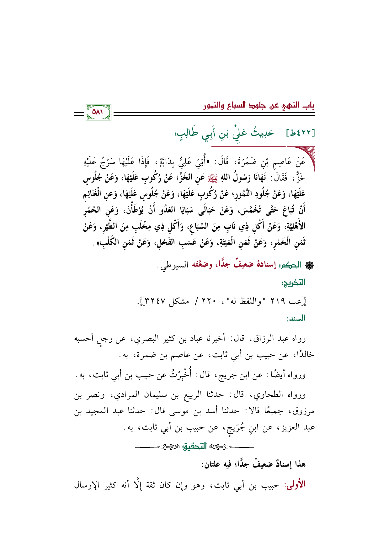 الأولى: حبيب بن أبي ثابت، وهو وإِن كان ثقة إِلَّا أنه كثير الإرسال