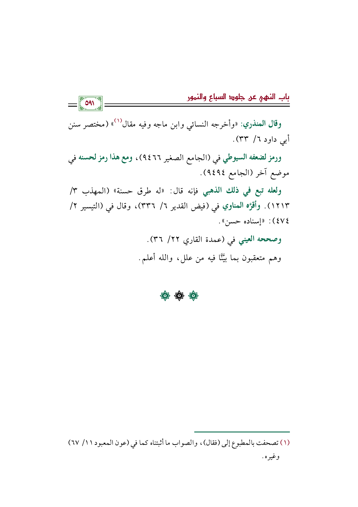 (¬١) تصحفت بالمطبوع إلى (فقال)، والصواب ما أثبتناه كما في (عون المعبود ١١/ ٦٧) وغيره.