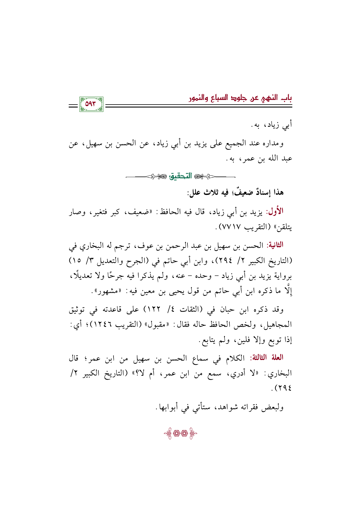 ومداره عند الجميع على يزيد بن أبي زياد، عن الحسن بن سهيل، عن عبد الله بن عمر، به.