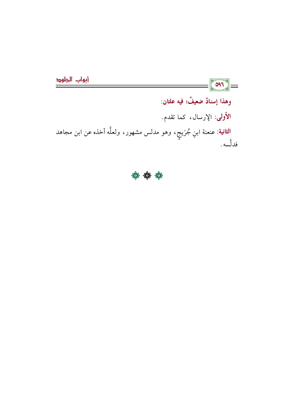 الثانية: عنعنة ابنِ جُرَيجٍ، وهو مدلس مشهور، ولعلَّه أخذه عن ابن مجاهد فدلَّسه.
