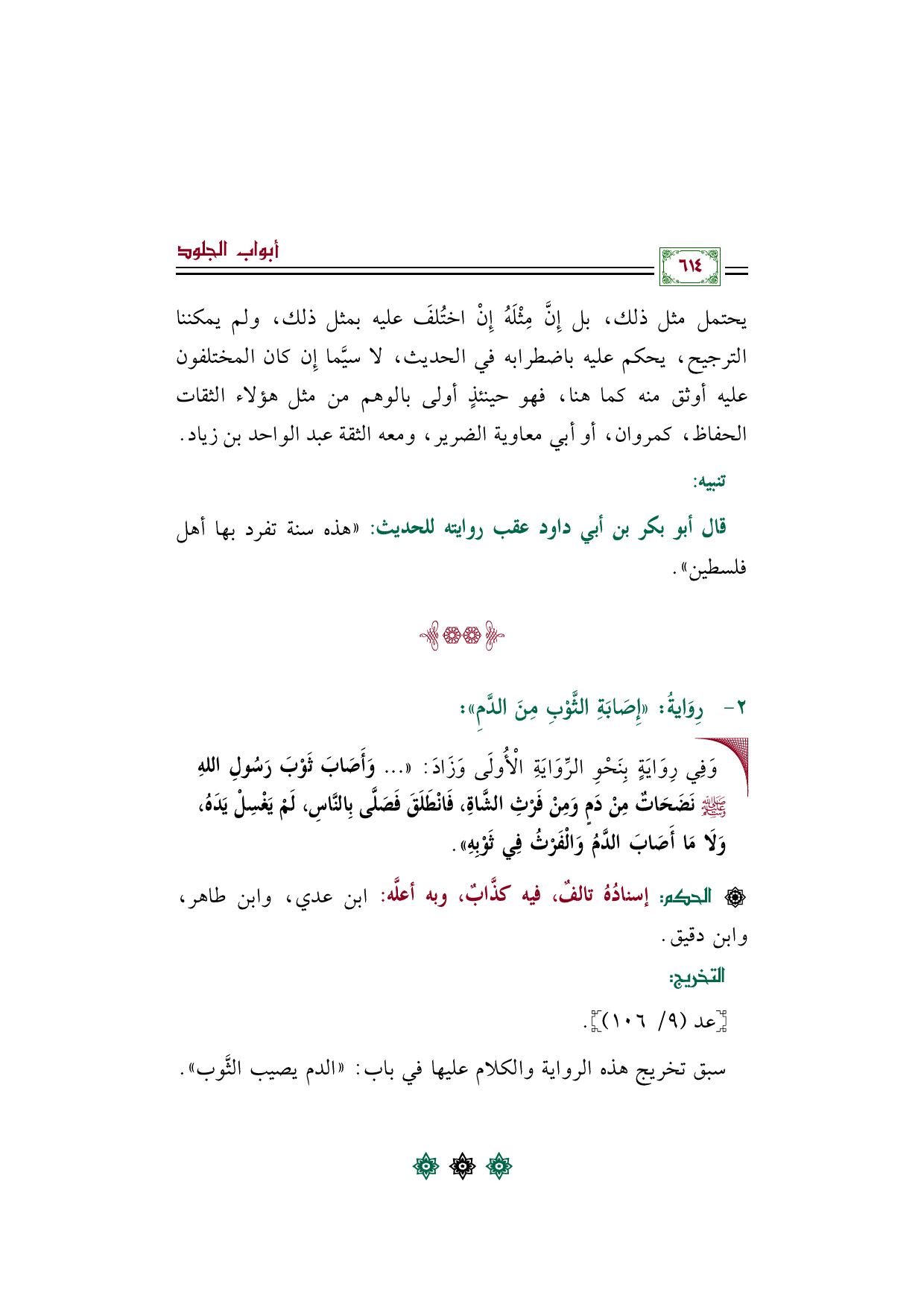 قال أبو بكر بن أبي داود عقب روايته للحديث: ((هذه سنة تفرد بها أهل فلسطين)).