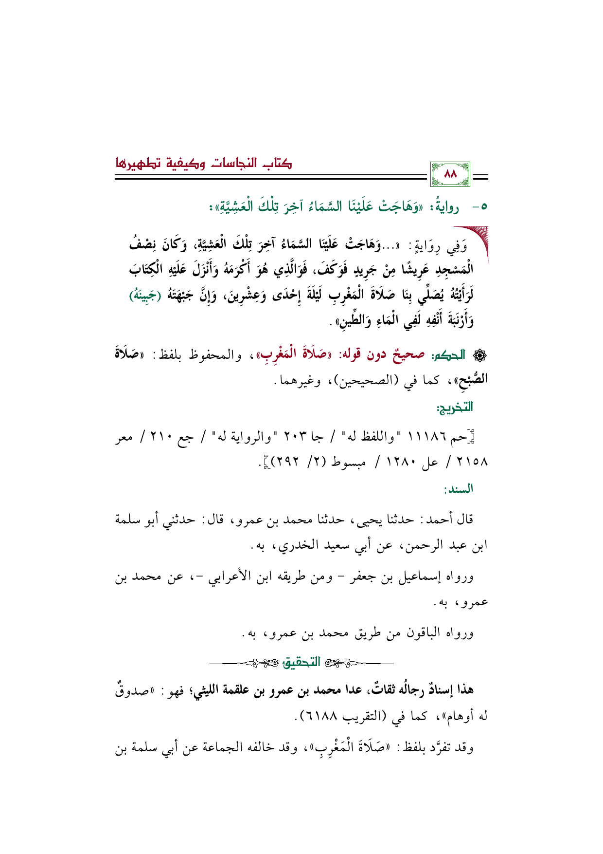 قال أحمد: حدثنا يحيى، حدثنا محمد بن عمرو، قال: حدثني أبو سلمة بن عبد الرحمن، عن أبي سعيد الخدري، به.