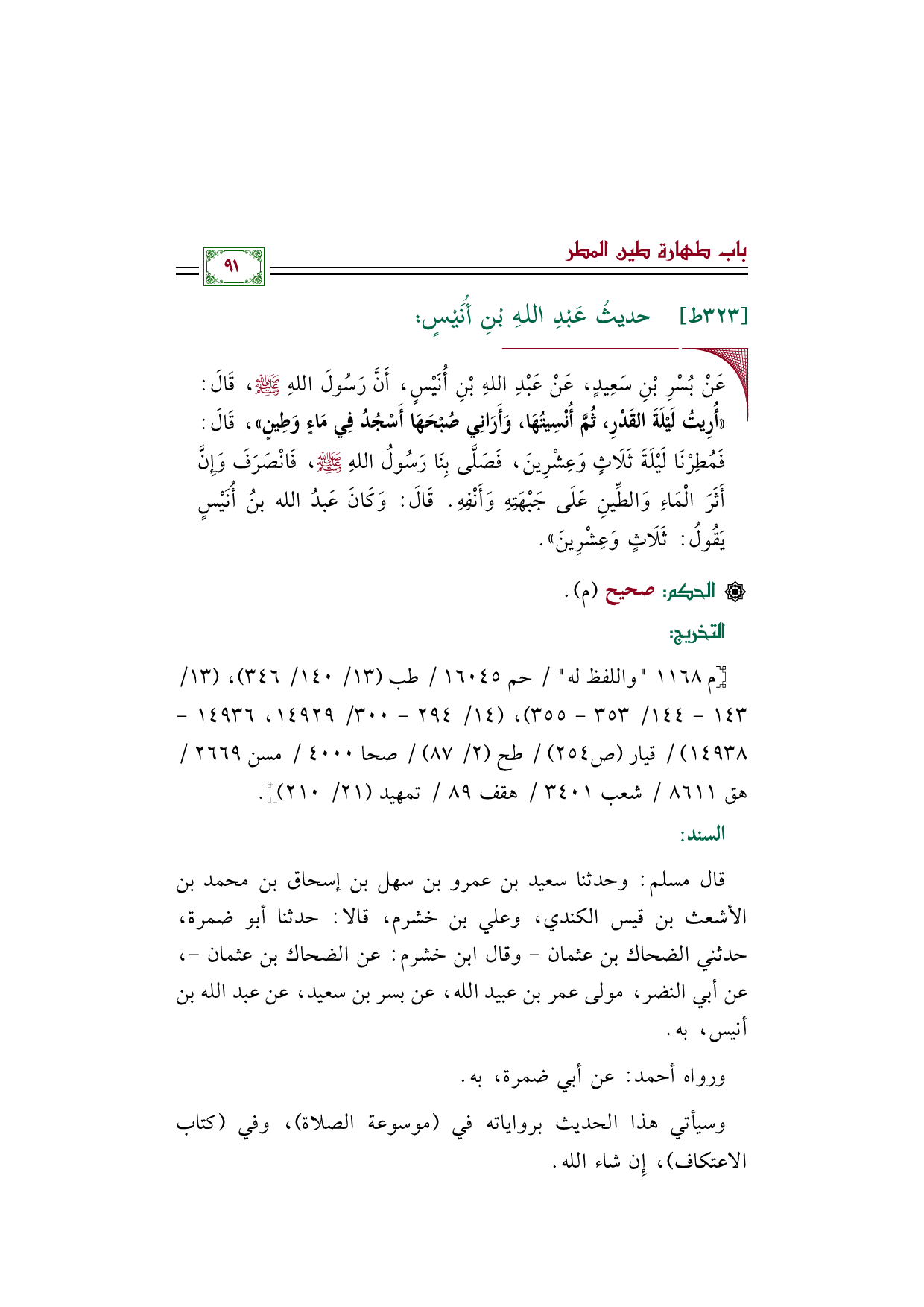 وسيأتي هذا الحديث برواياته في (موسوعة الصلاة)، وفي (كتاب الاعتكاف)، إِن شاء الله.