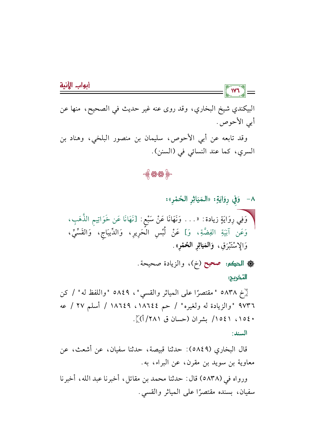 ورواه في (٥٨٣٨) قال: حدثنا محمد بن مقاتل، أخبرنا عبد الله، أخبرنا سفيان، بسنده مقتصرًا على المياثر والقسي.
