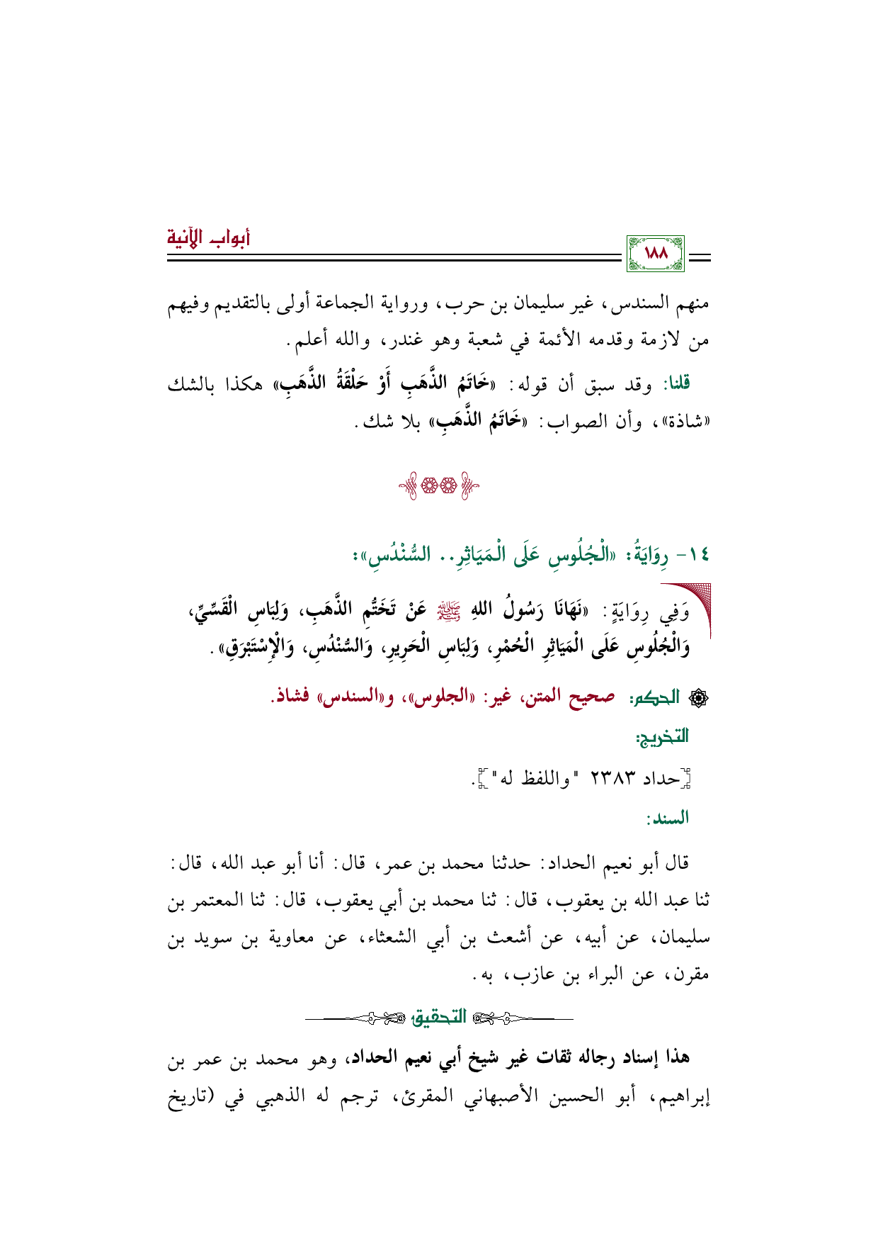 رِوَايَةُ: الْجُلُوسِ عَلَى الْمَيَاثِرِ .. السُّنْدُسِ: