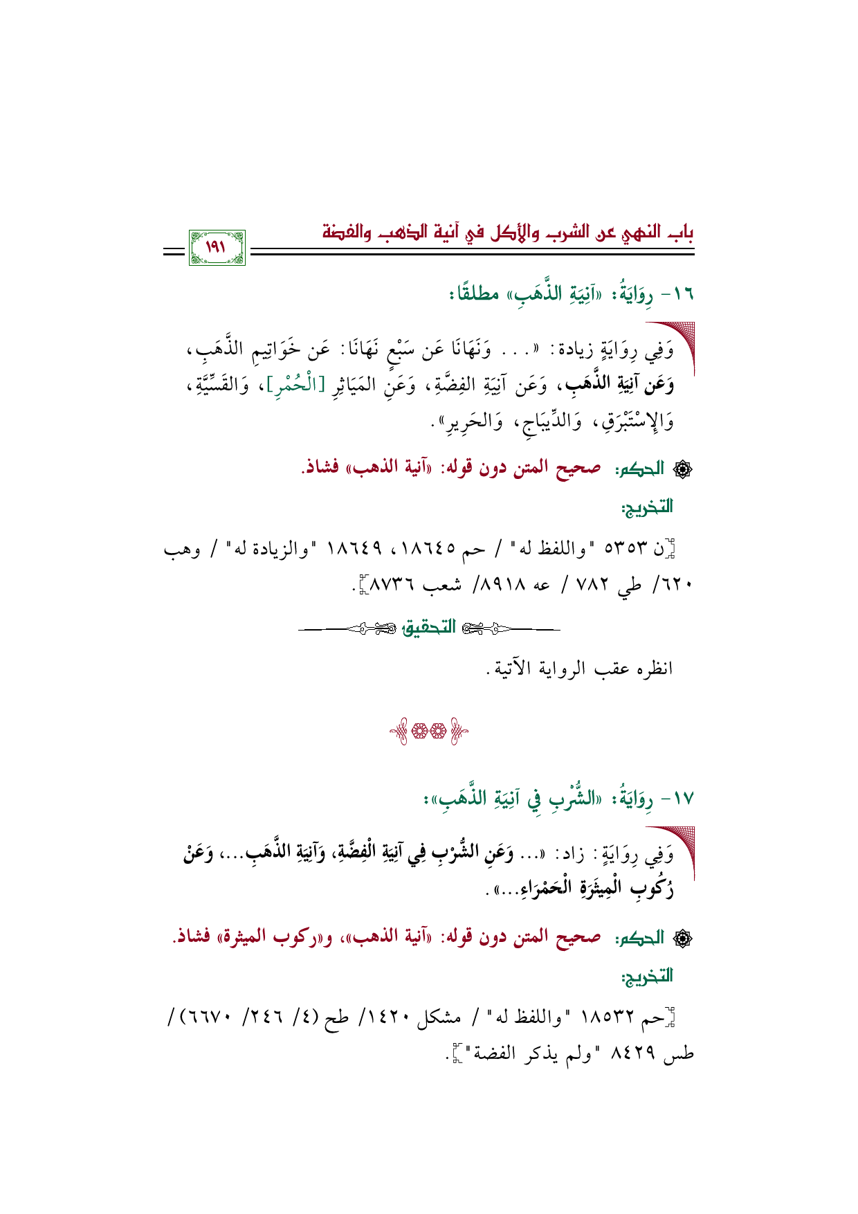 رِوَايَةُ: ((آنِيَةِ الذَّهَبِ)) مطلقًا: