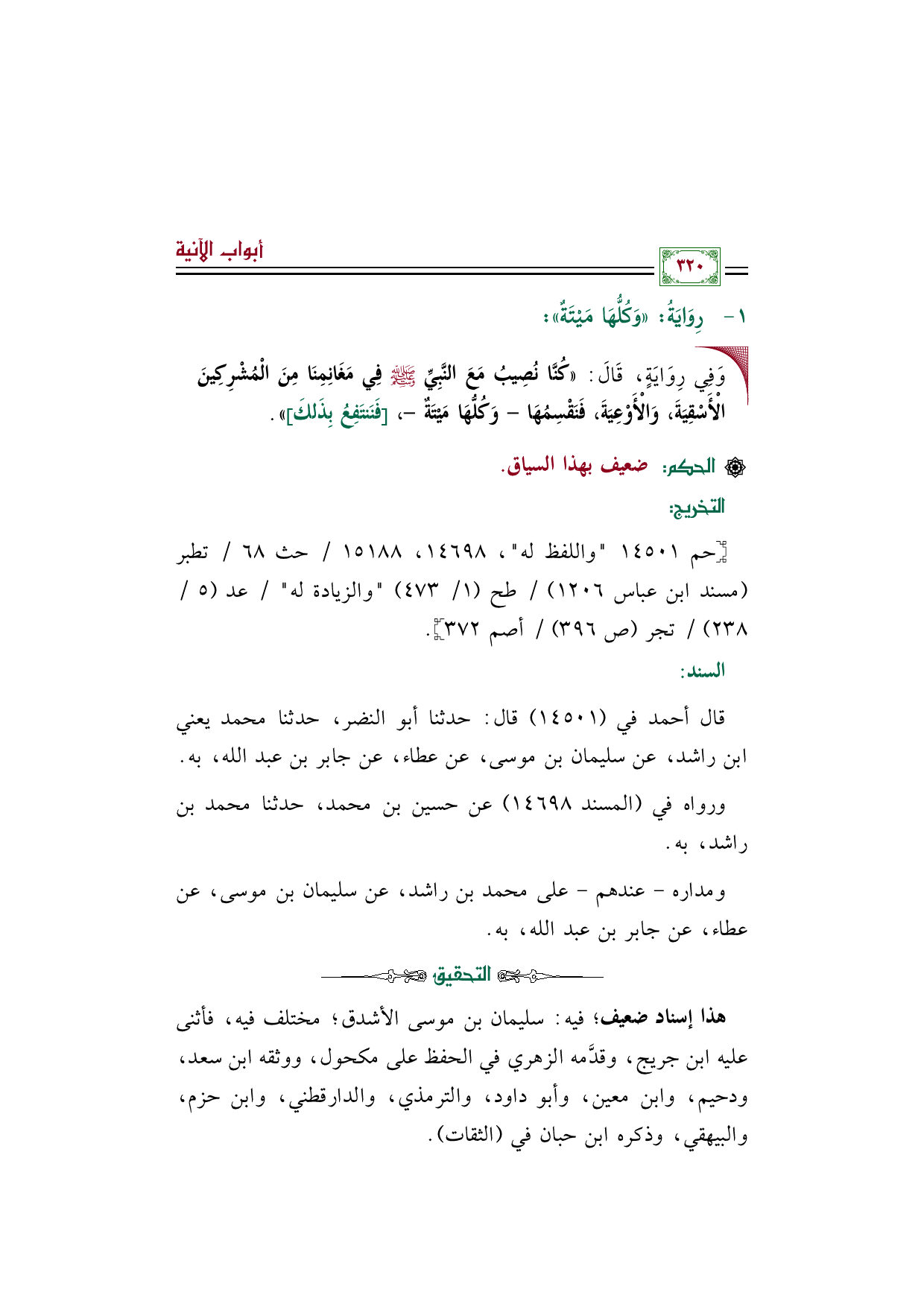 ومداره - عندهم - على محمد بن راشد، عن سليمان بن موسى، عن عطاء، عن جابر بن عبد الله، به.
