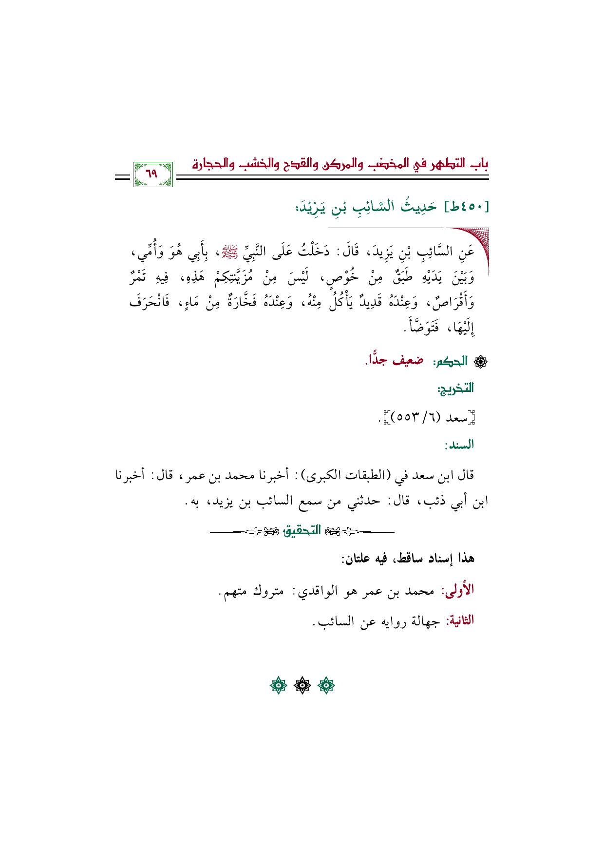 ٤٥٠ - حَدِيثُ السَّائِبِ بْنِ يَزِيْدَ: